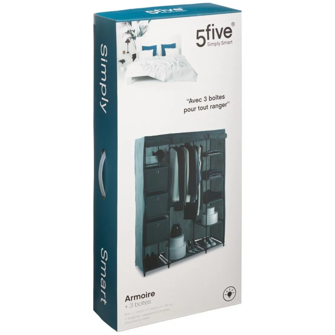 Caractéristiques Armoire penderie 3 boîtes tissu gris anthracite