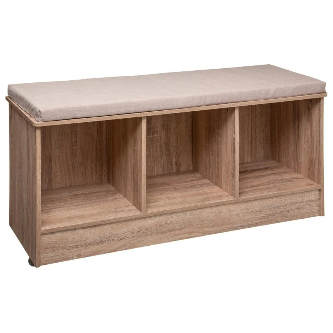 Optimisez le rangement de vos espaces de vie avec ce Banc 3 cases « Mix N’ Modul » effet chêne naturel. Meuble 2 en 1, le plateau sert d’assise et les compartiments organisent vos affaires. Son design épuré est facile à marier à tous les styles de déco.
