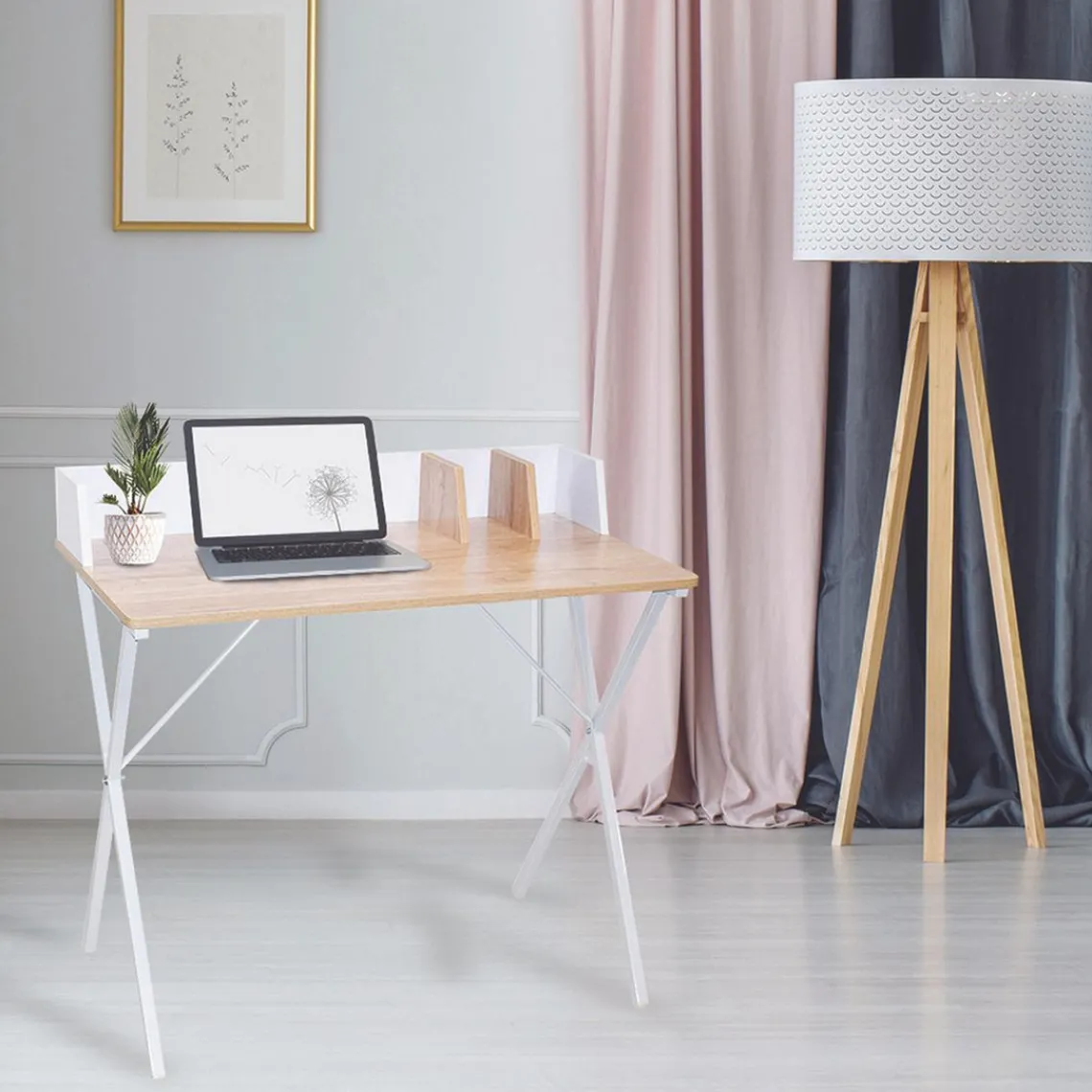 Optez pour ce Bureau Brice Blanc. Ce meuble allie esthétisme et praticité. D’une hauteur de 90 cm, il dispose d’un plateau, de deux espaces de rangement et d’un piètement en métal blanc très solide.