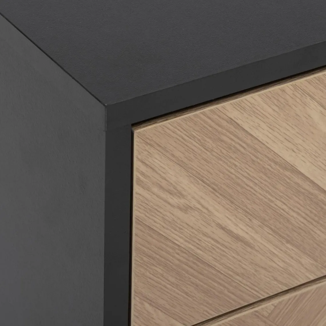 Caractéristiques Chevet « Chevrons » 2 tiroirs effet pin naturel et noir