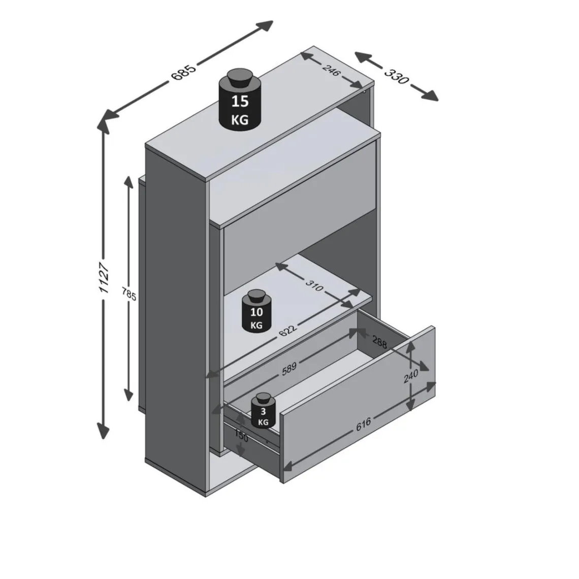 Caractéristiques Comode haute avec 2 tiroirs VERONA 2 gris et naturel