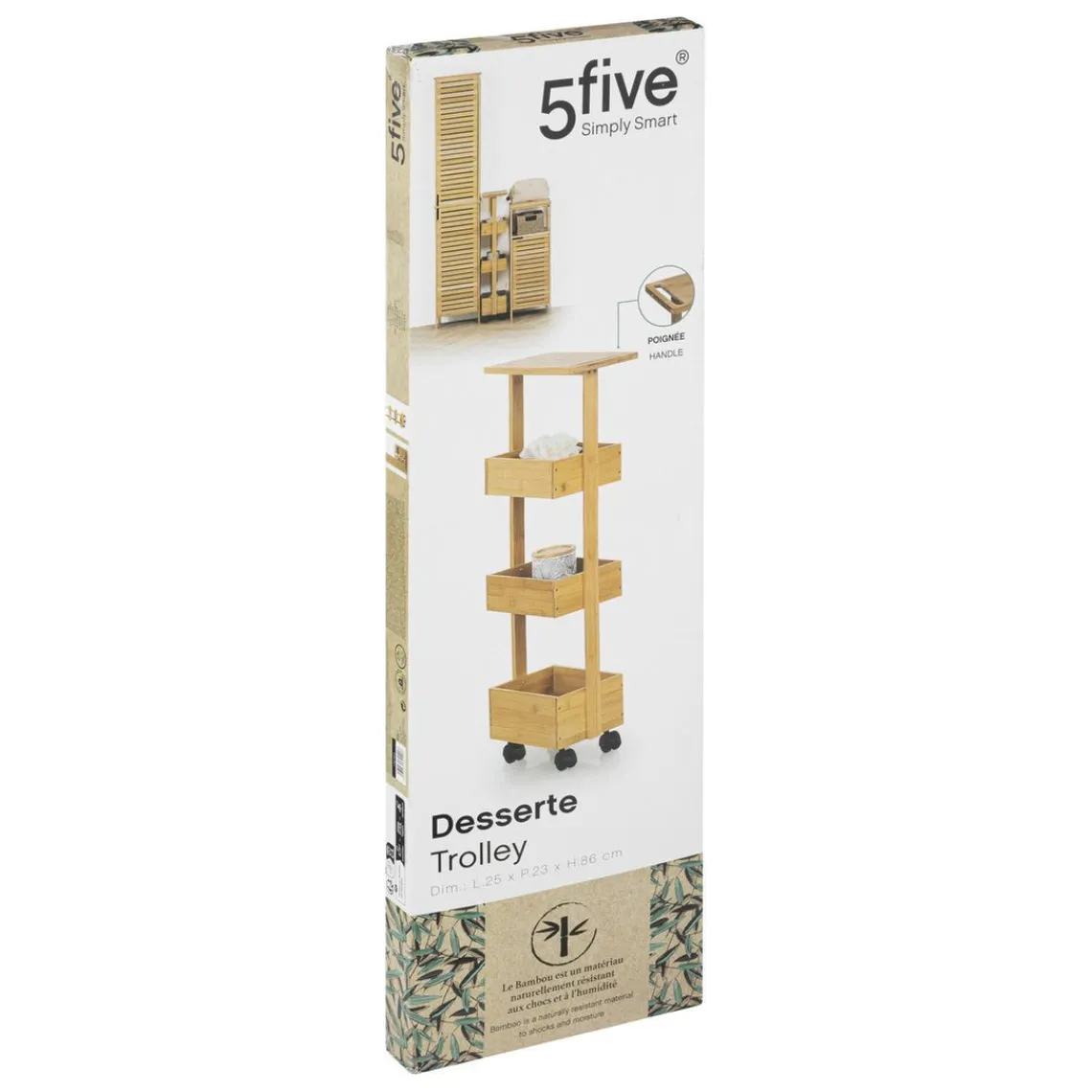 Caractéristiques Desserte à roulette 4 niveaux en bambou