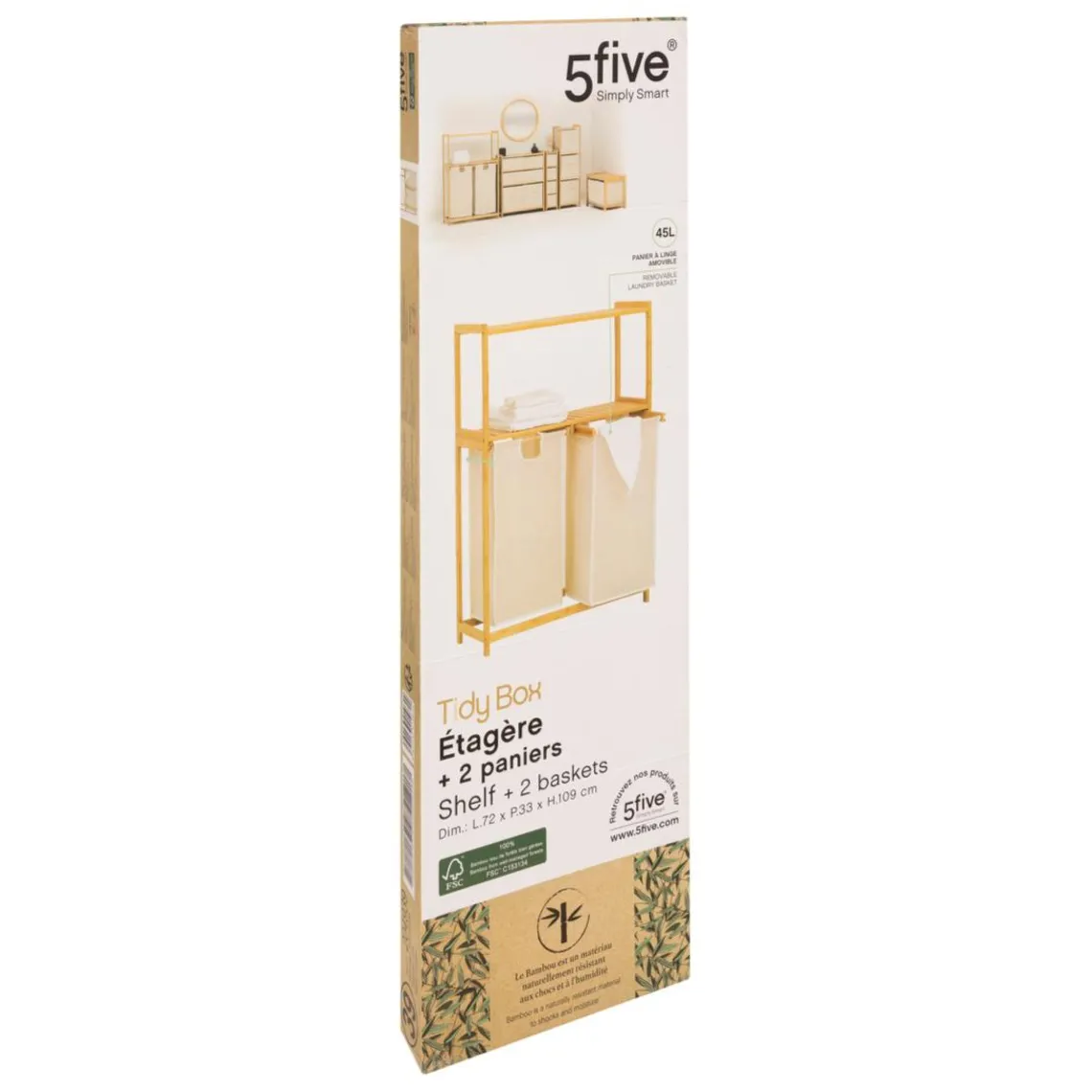 Caractéristiques Étagère « Tidy Box » avec 2 sacs à linge en bambou marron