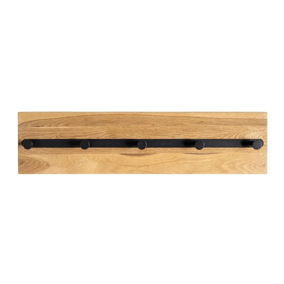 en bois massif chêne huilé (Royal Oak), patère avec 5 crochets en métal noir époxy