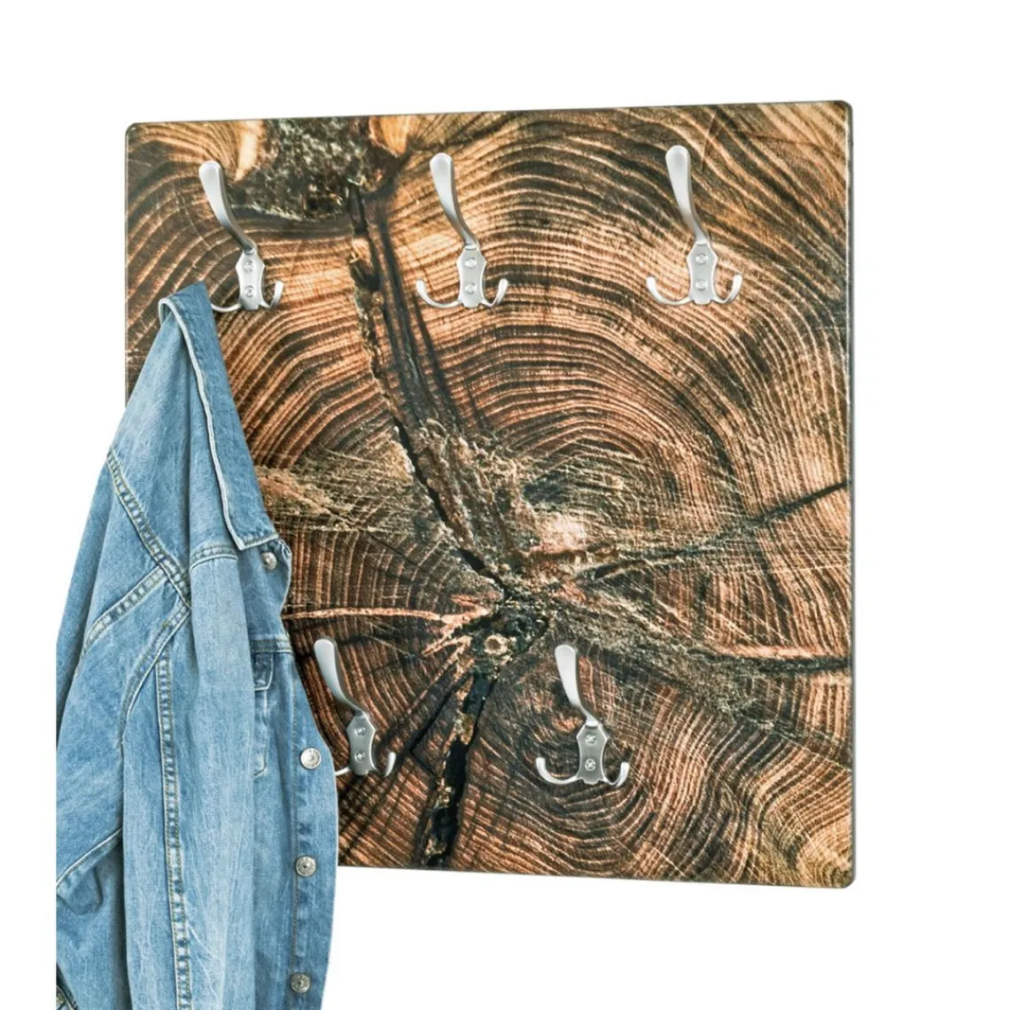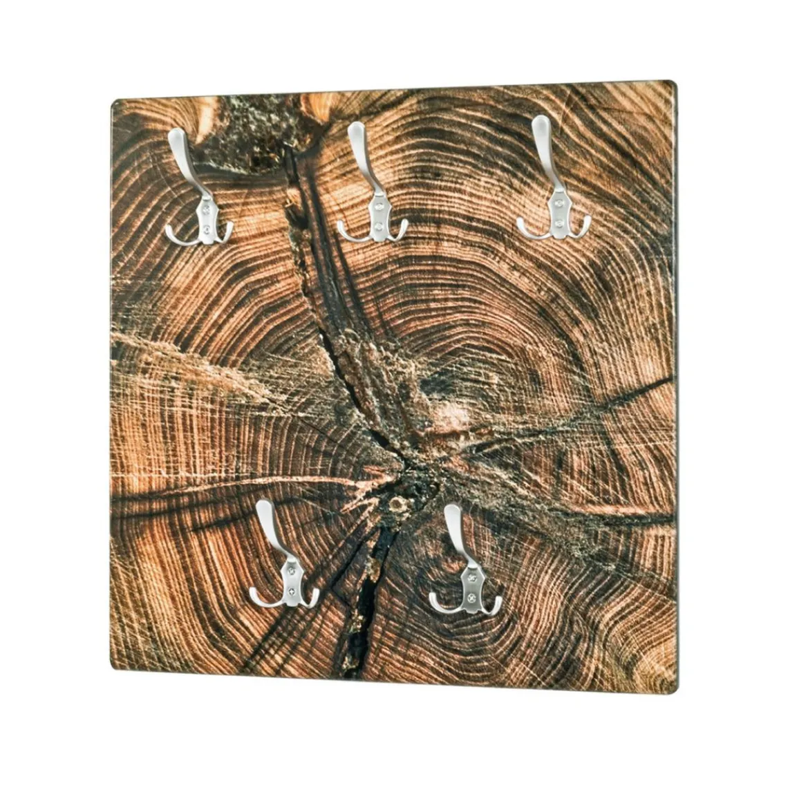 MDF avec impression par Ultra Violet (motif: Bois de bout), 5 crochets en métal optique inox