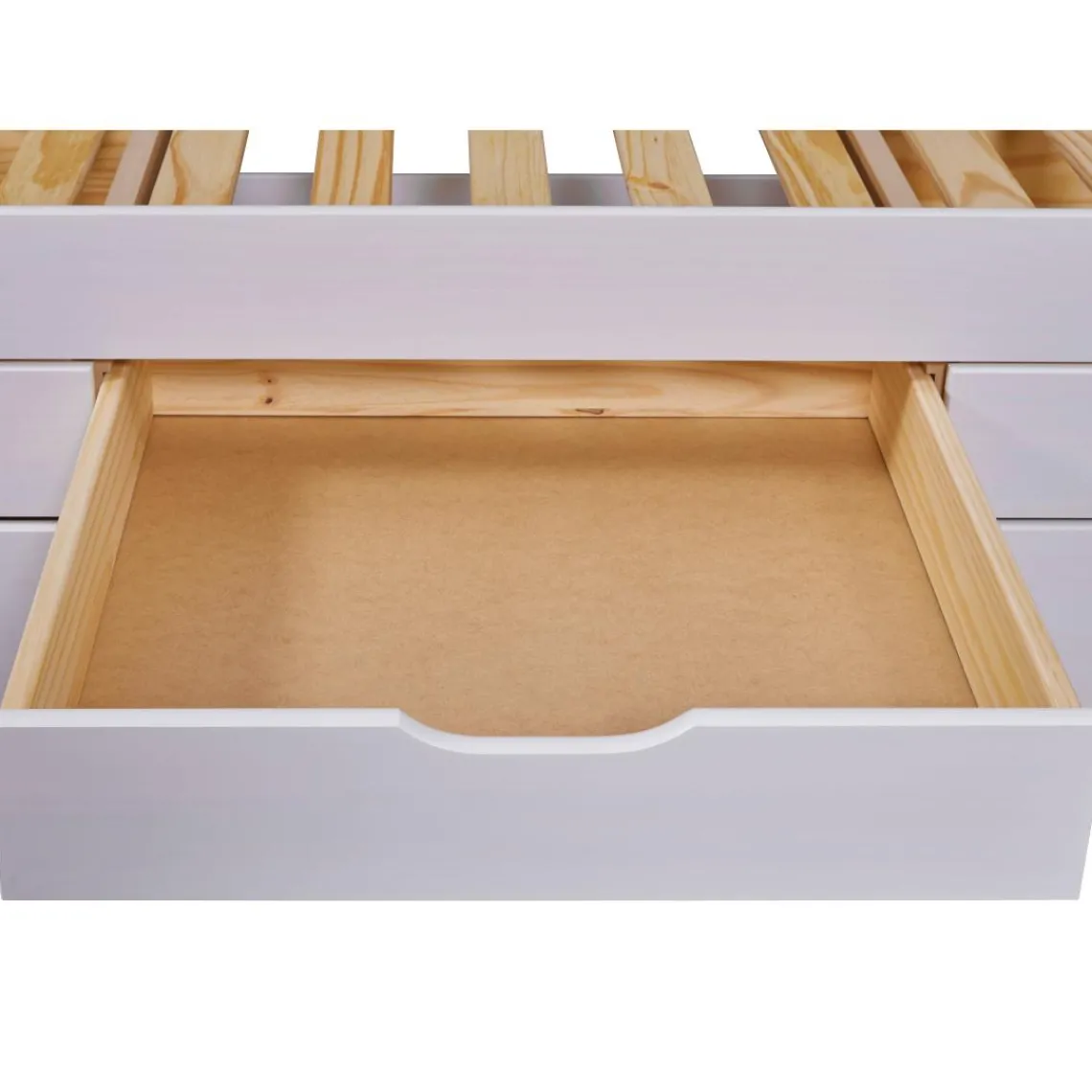Caractéristiques Lit à tiroirs 90×200 cm pin massif blanc