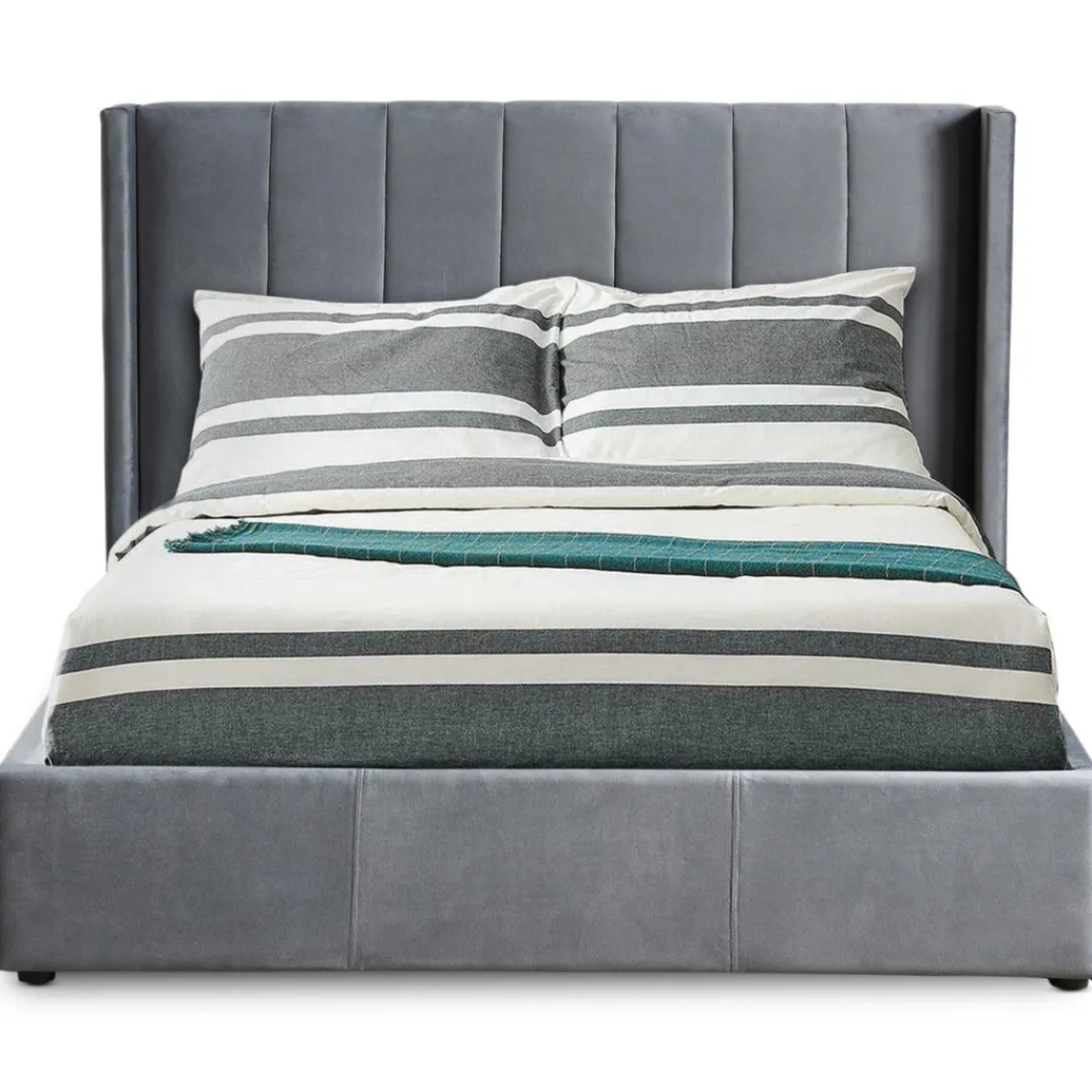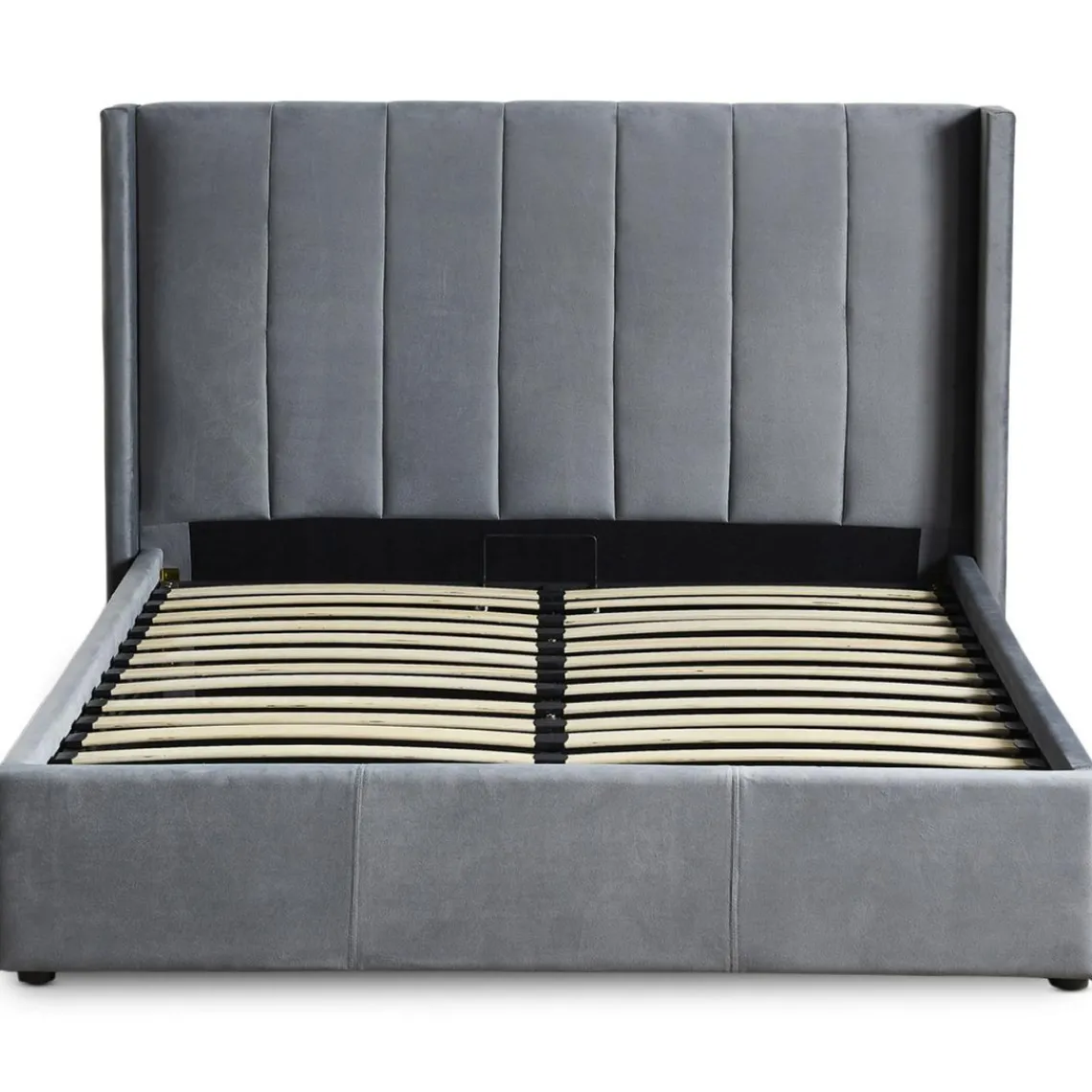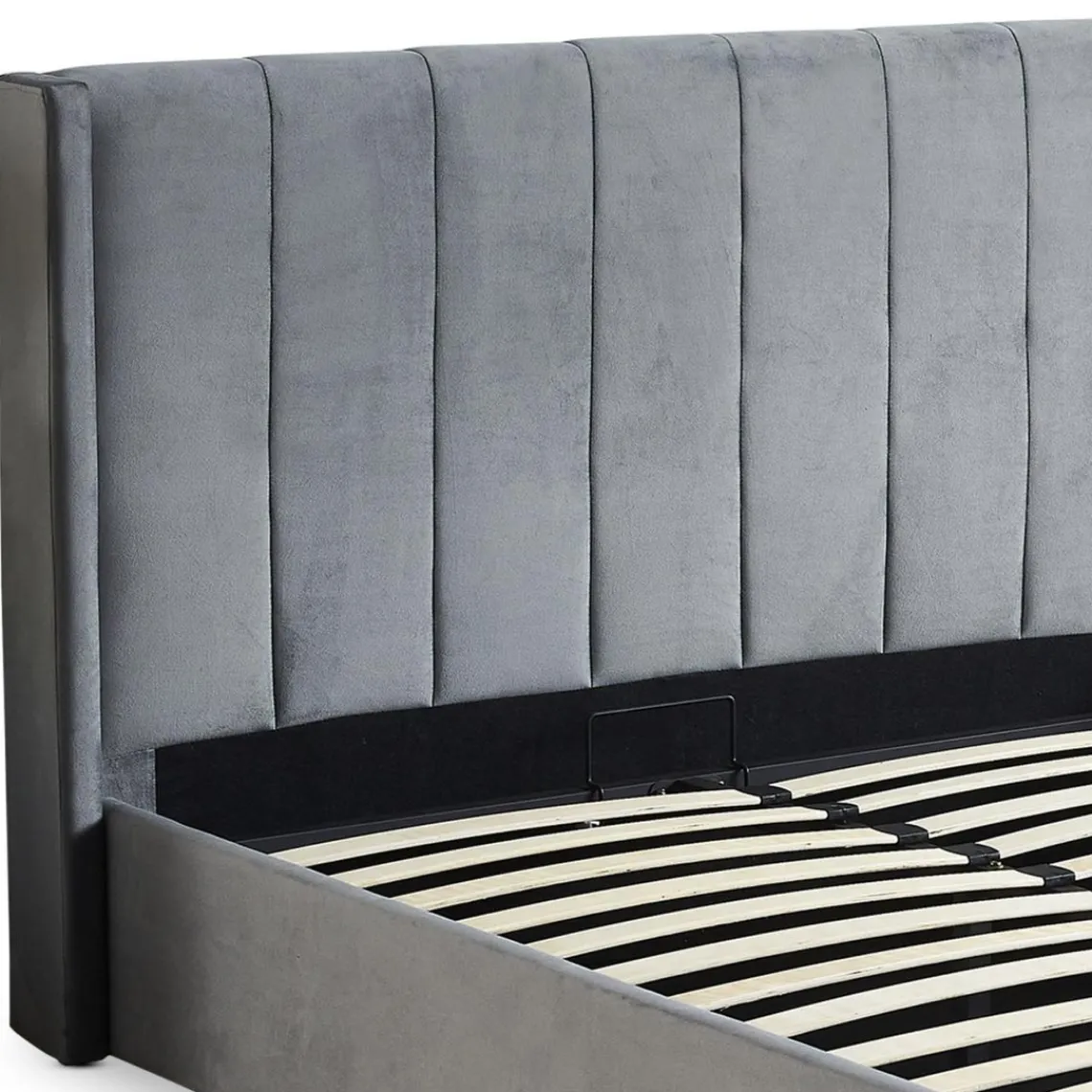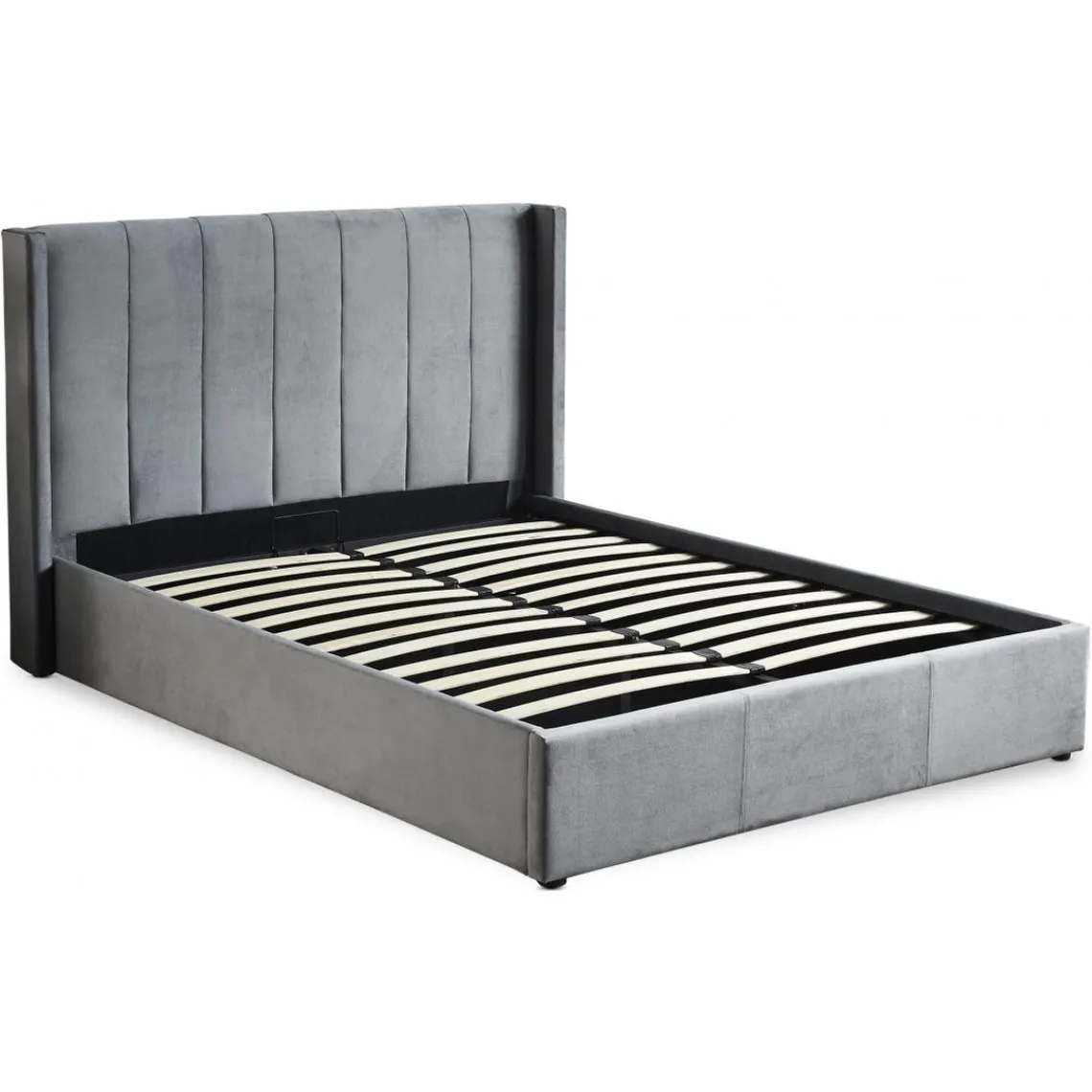 Caractéristiques Lit Double MAGORIAL Avec Sommier Relevable 140x190cm Velours Gris