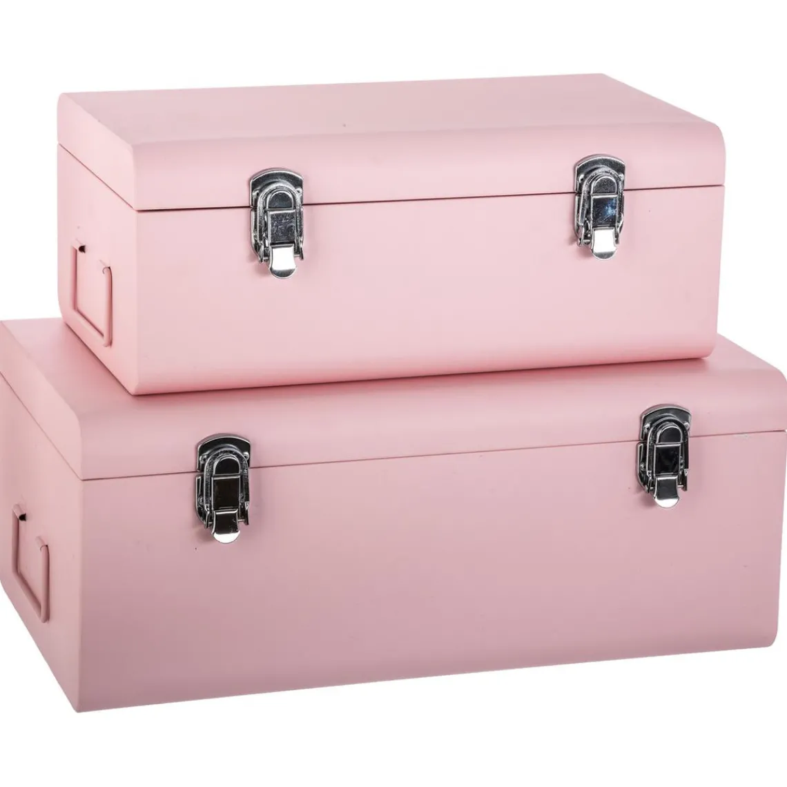 Conciliez rangement et déco grâce à ce Lot de 2 Cantines métal rose. Pratiques, ses valises sont dotées de poignées faciles à déplacer. Leur coloris pastel apporte gaieté à la déco.