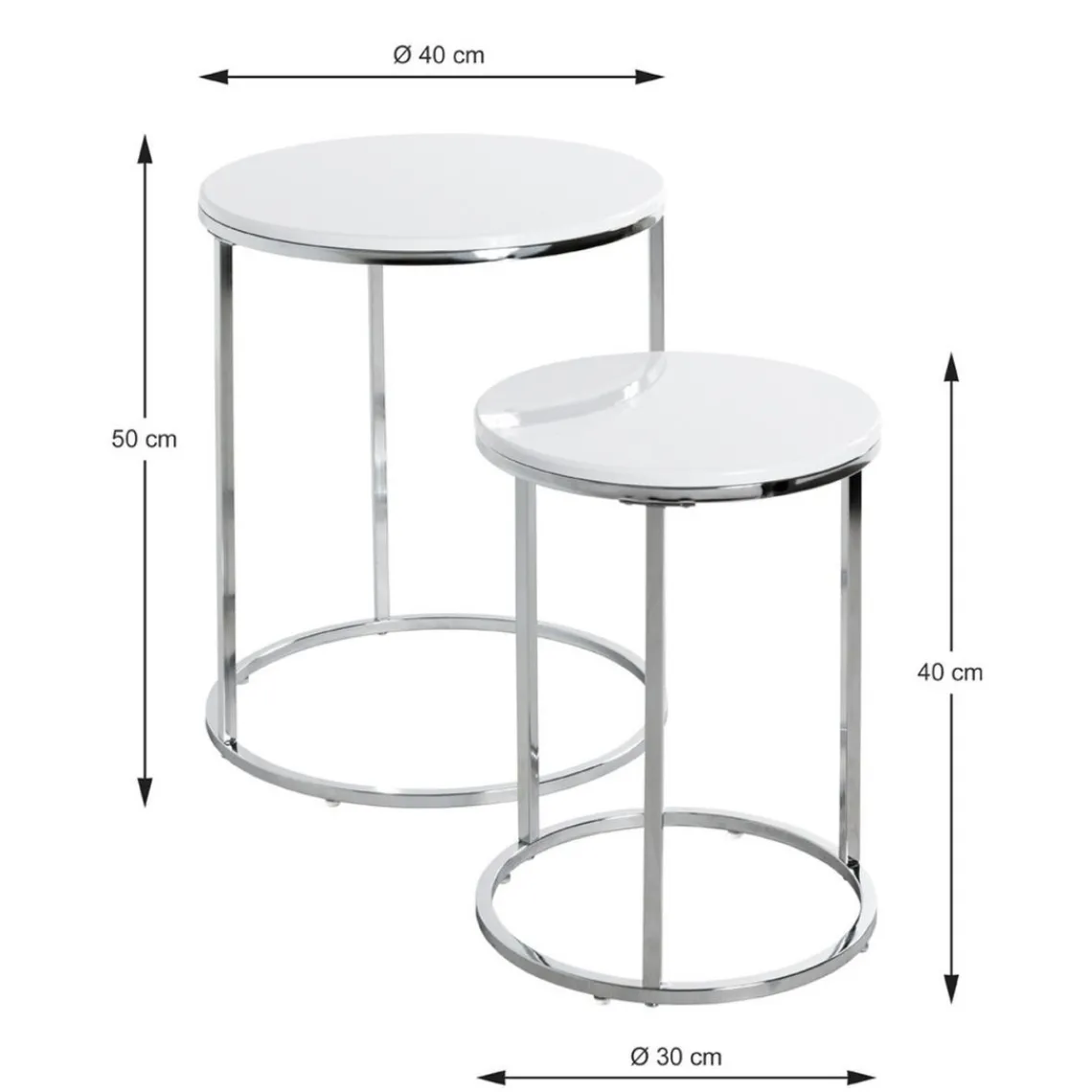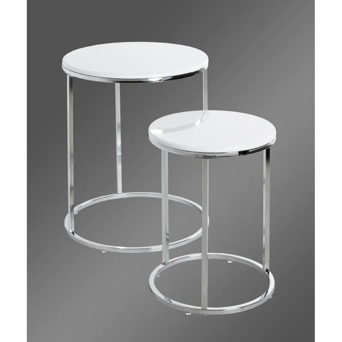 Caractéristiques Lot de 2 tables d’appoint blanc chromé