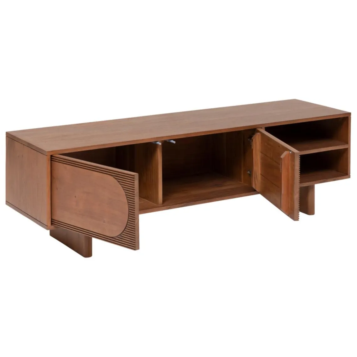Le meuble TV 2 portes « Nanda » en marron brillant est un objet élégant et contemporain fabriqué par 3S. x Home. Cette pièce a été construite à partir d’acacia solide, connu pour sa robustesse et sa durabilité. Ses dimensions de 147cm de longueur et 45,5cm de hauteur assurent qu’elle s’adapte parfaitement dans des espaces de différentes tailles. La couleur marron ajoute une touche chaleureuse et accueillante à tout espace de vie. Le meuble présente deux portes offrant un espace de rangement ample et organisé pour vos équipements multimédias. Les finitions soignées sont observables dans l’image, témoignant de la qualité supérieure du produit.