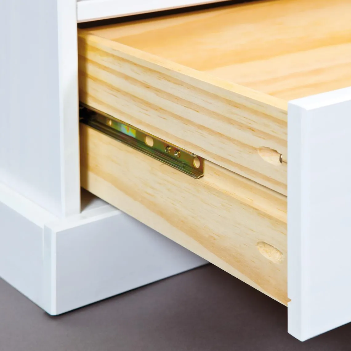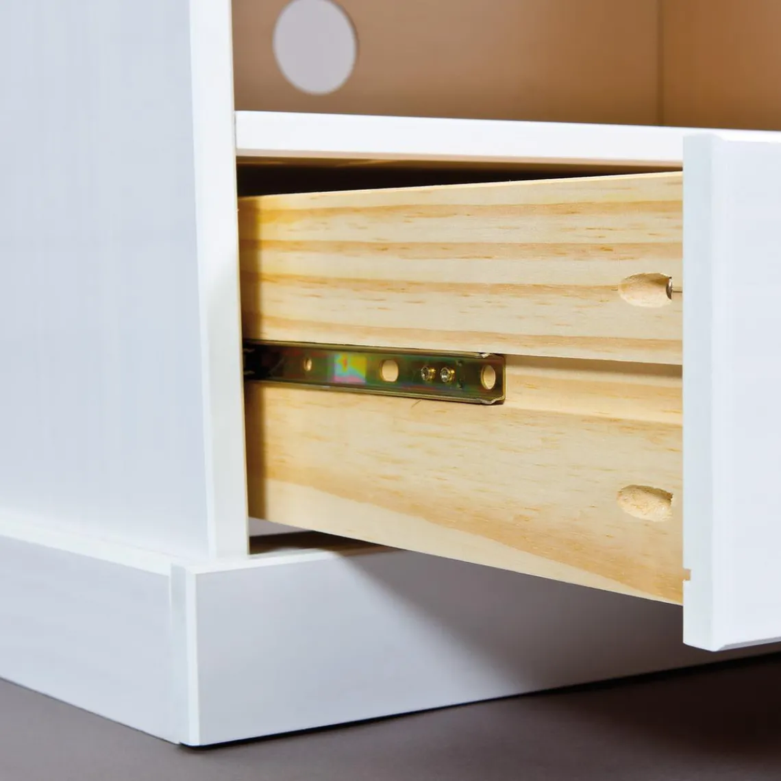 Ce Meuble TV 3 grands tiroirs en pin massif ROSTO vous fera profiter d’une décoration shabby chic grâce à son style de campagne. Il égaye la pièce avec son look totalement blanc. Equipé de 3 grands tiroirs montés sur rails coulissants, il fait également office de rangement. Ses 3 niches en plus vous permettent de glisser vos lecteurs audiovisuels.