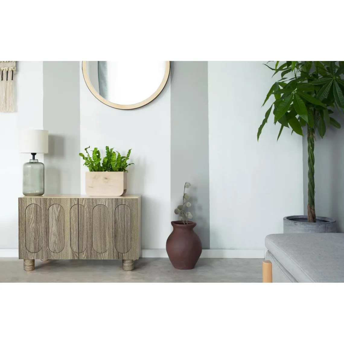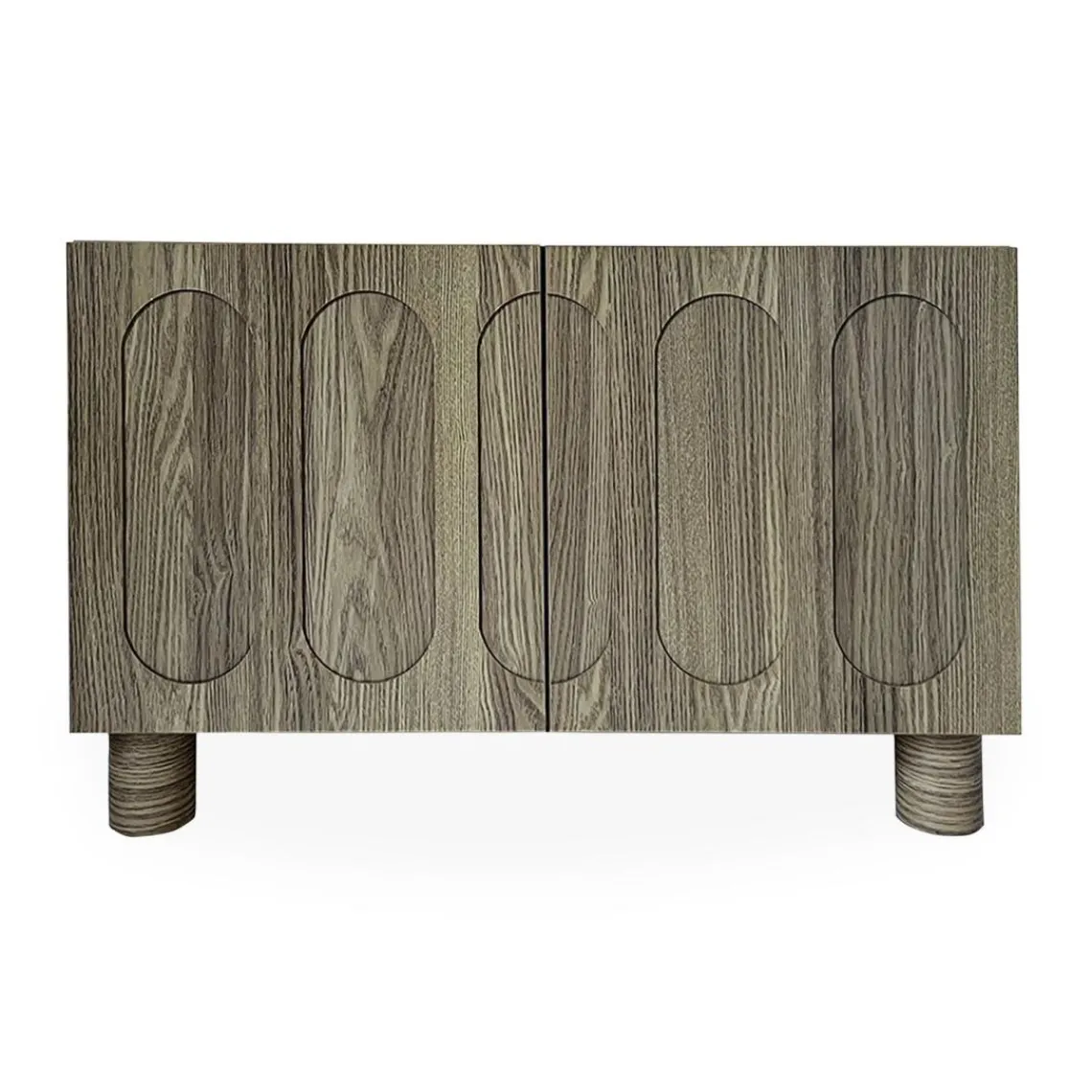 Caractéristiques Petit buffet rétro-moderne avec portes sculptées Durand Chêne grisé
