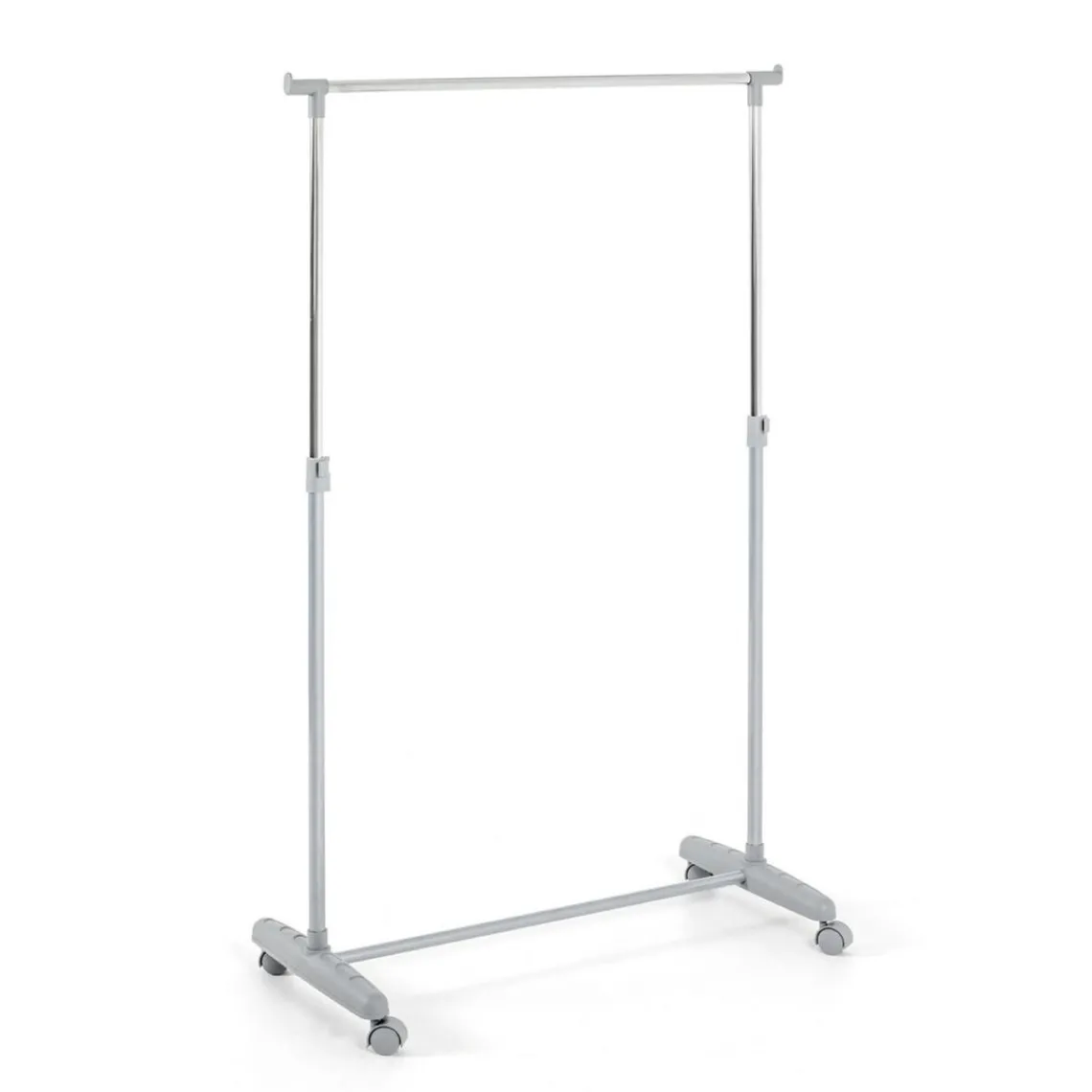 Tube d’acier gris avec 1 tringle chromé, pièces en PVC gris, réglable en hauteur