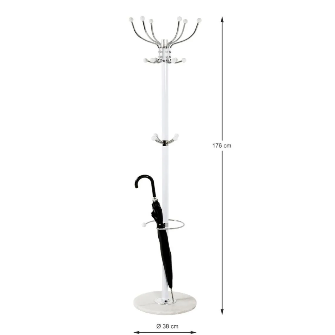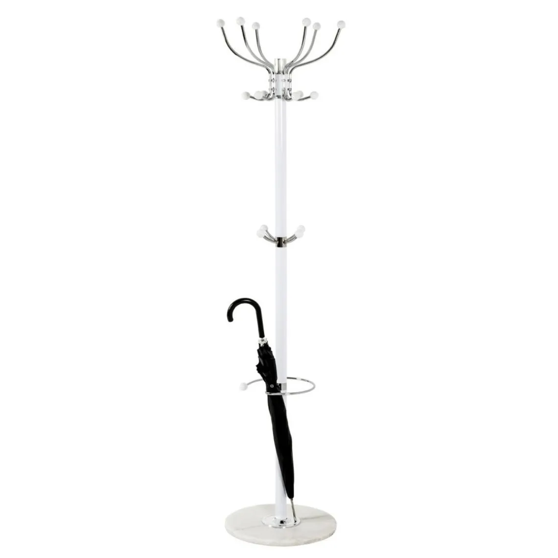 Caractéristiques Porte manteau blanc avec crochets et porte parapluie chromés