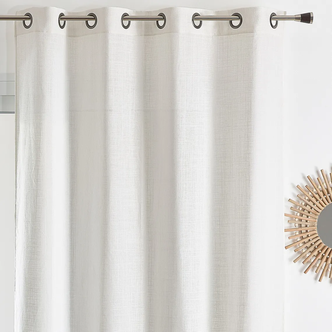 Le voilage étamine uni COTOLINO écru de 3S. x Home est une solution déco à la fois chaleureuse et lumineuse. Fabriqué en 65% polyester, 25% coton et 10% lin, il offre un aspect tramé naturel et une transparence douce pour filtrer la lumière. Sa teinte écru, un mélange entre blanc cassé et beige doux, s’intègre facilement dans tous les styles d’intérieur, du contemporain au rustique. Son grammage de 125 g/m² assure une bonne tenue, tandis que ses 8 œillets ronds canon de fusil permettent une pose rapide et stable. Dimensions : 140 x 260 cm.