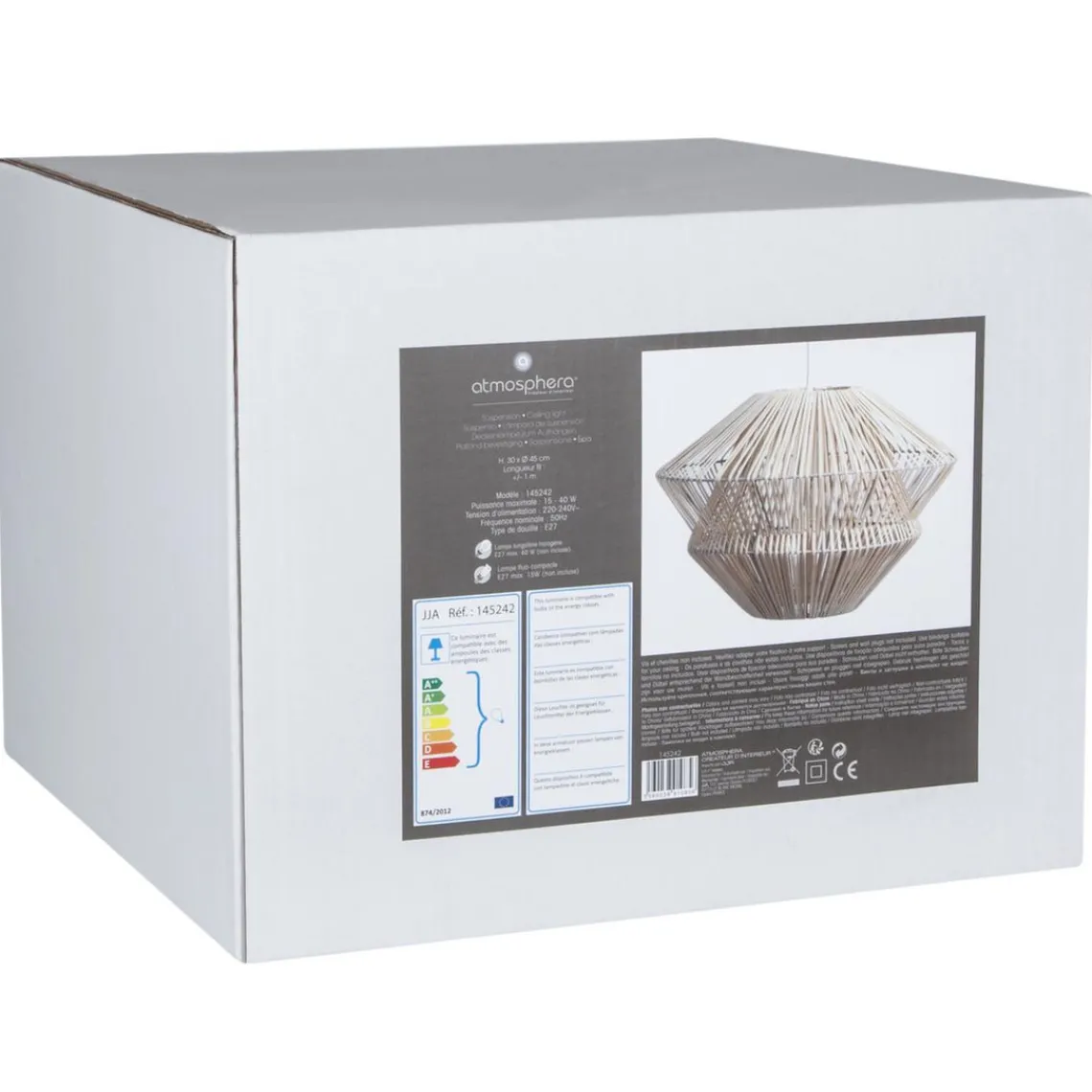Ce lustre de la marque 3S. x Home arbore une présence indéniable. Mesurant 30 cm de hauteur, avec une envergure de 46 cm en largeur et longueur, il est essentiellement volumineux mais reste équilibré dans sa structure. Le travail du rotin lui confère un caractère local et artisanal, ajoutant à son originalité. Sa silhouette évasée donne un effet contemporain à l’ensemble. Sa couleur naturelle est soulignée avec un ton proche du beige, lui permettant de se fondre facilement dans n’importe quel décor.