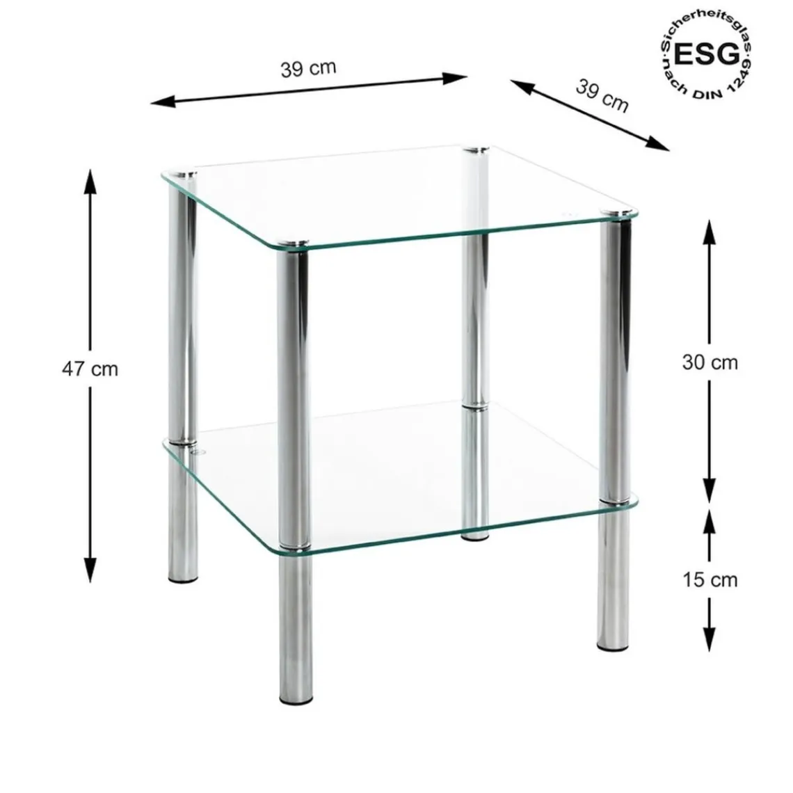 Caractéristiques Table d’appoint avec double plateau verre transparent