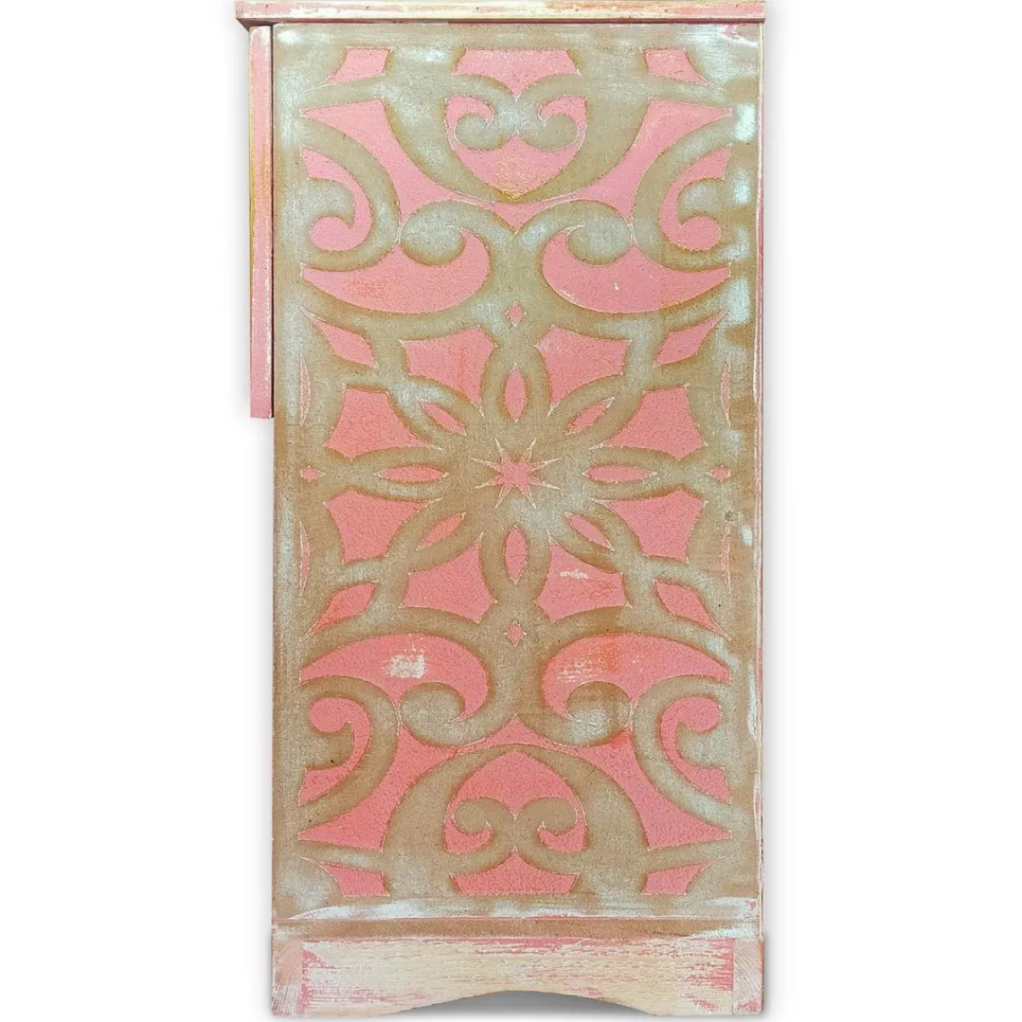 Découvrez la Table de chevet style oriental bois sculpté 1 porte Monbolyto Bois Rose de marque 3S. x Home. Cette pièce mélange élégamment le contemporain à une esthétique orientale. Sa couleur Rose apporte une touche de douceur dans tout espace. Mesurant 65 cm de hauteur et 42 cm de longueur, elle offre un espace de rangement pratique grâce à sa porte. Sa structure en bois, minutieusement sculptée, offre une touche d’authenticité et d’originalité. L’image fournie révèle un plateau supérieur délicatement arrondi, ajoutant à son charme unique. Faisant partie de la catégorie Table de chevet, elle trouvera parfaitement sa place à côté de votre lit.