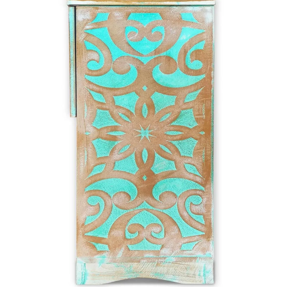 Caractéristiques Table de chevet style oriental bois sculpté 1 porte Monbolyto Bois Vert