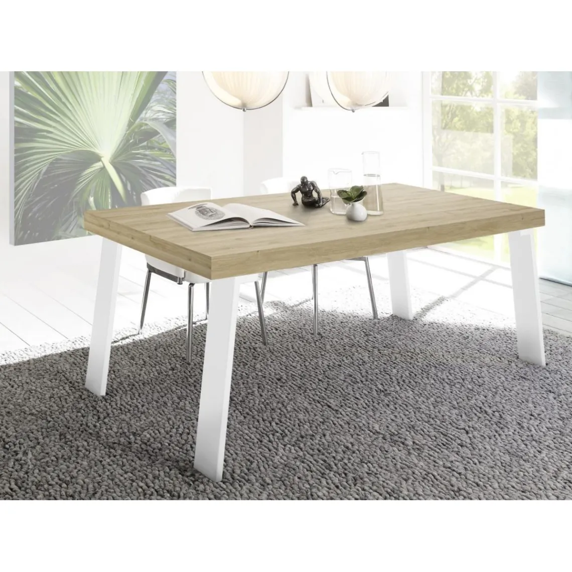 Caractéristiques Table fixe PALMA avec pieds en fer chene clair blanc