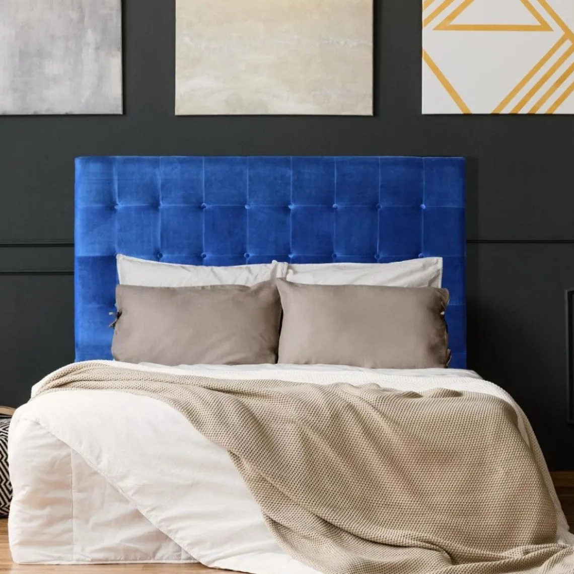 La tête de lit LUXOR VELOURS est un magnifique élément décoratif spécialement conçu pour habiller le mur contre lequel le lit est placé.