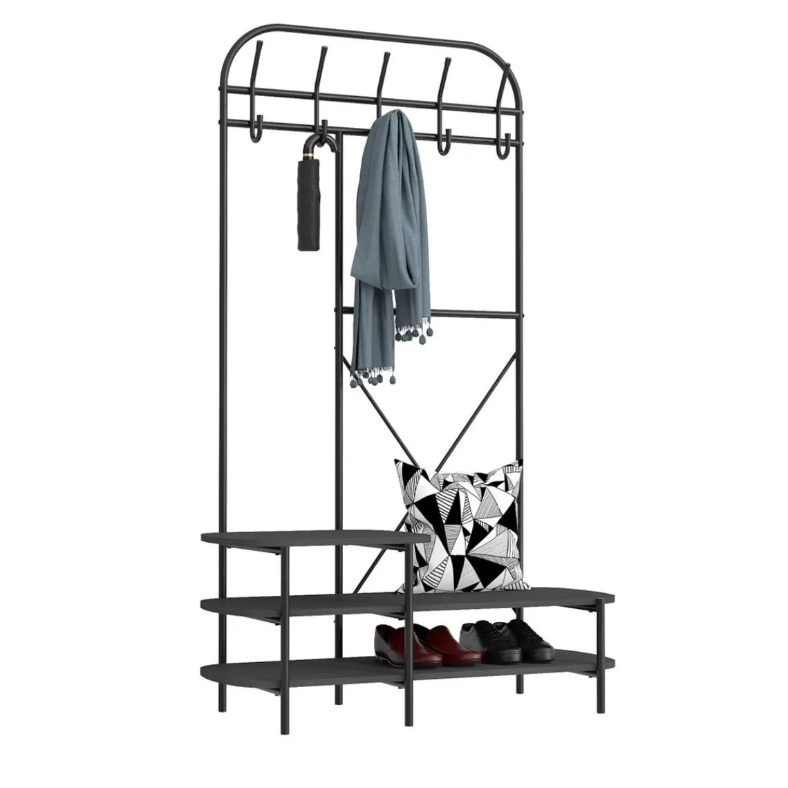 Meuble de rangement pratique, cette Vestiaire d’entrée 3 niveaux et 5 crochets Noir Style Industriel organise efficacement et avec style votre intérieur.