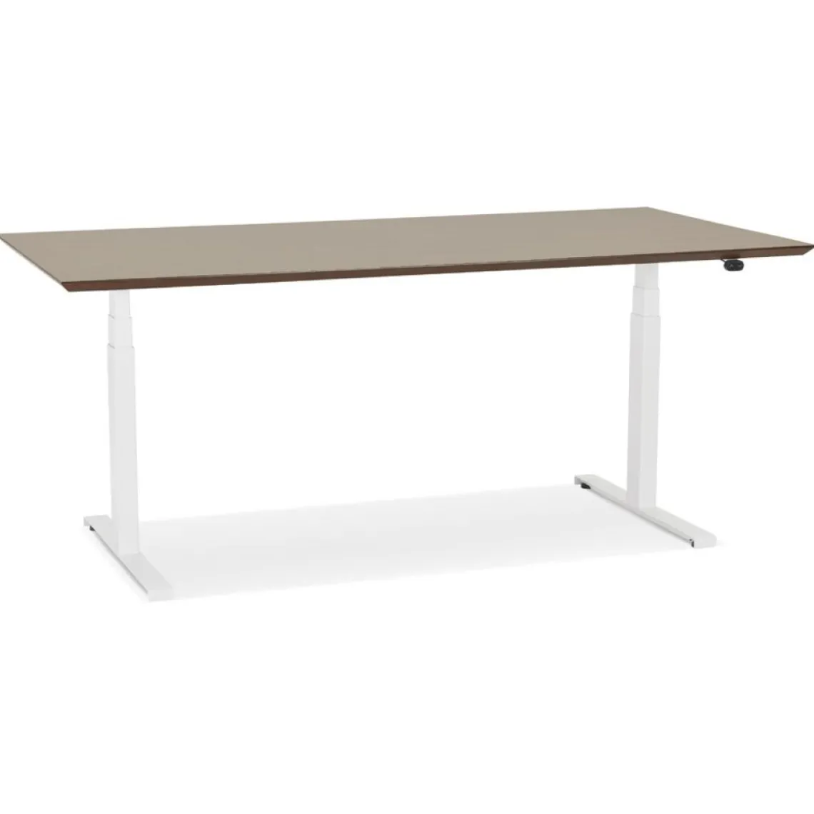 Caractéristiques Bureau assis-debout électrique ‘BIONIK’avec plateau en bois finition Noyer et pied en métal blanc