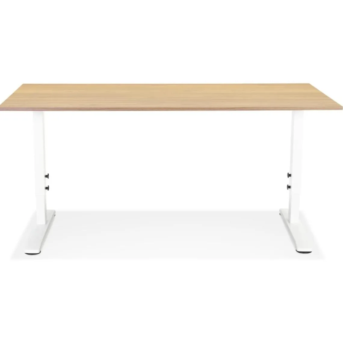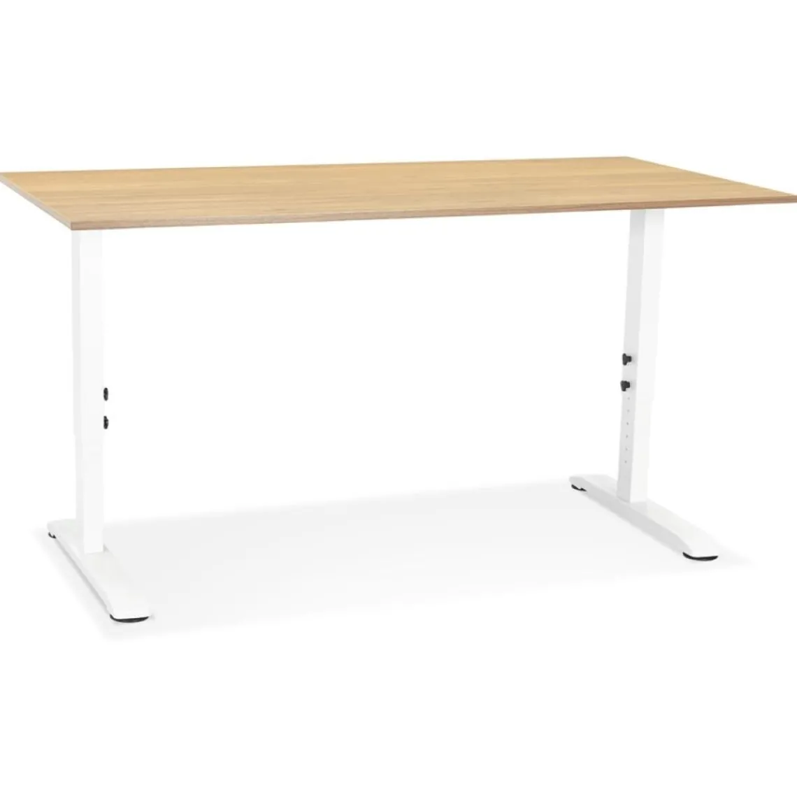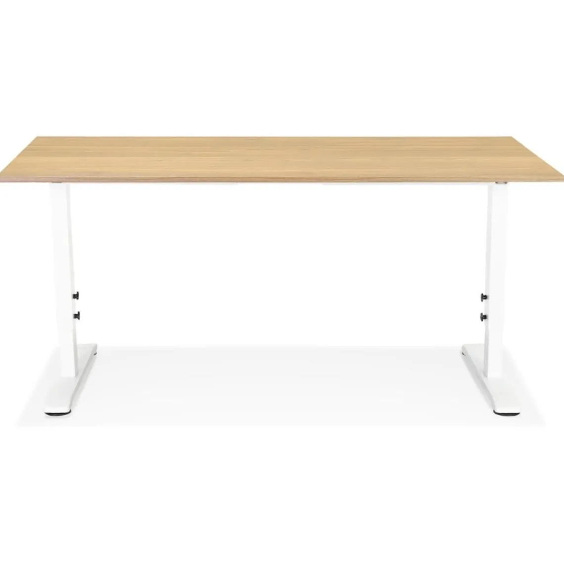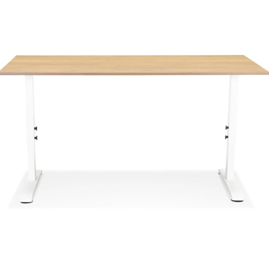 Caractéristiques Bureau réglable en hauteur ‘OSMOSE’ en bois finition naturelle et métal blanc