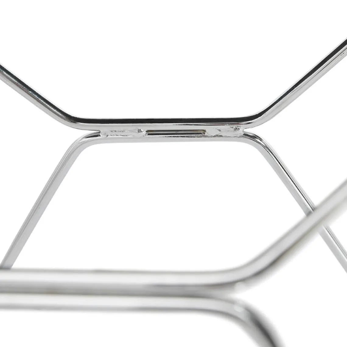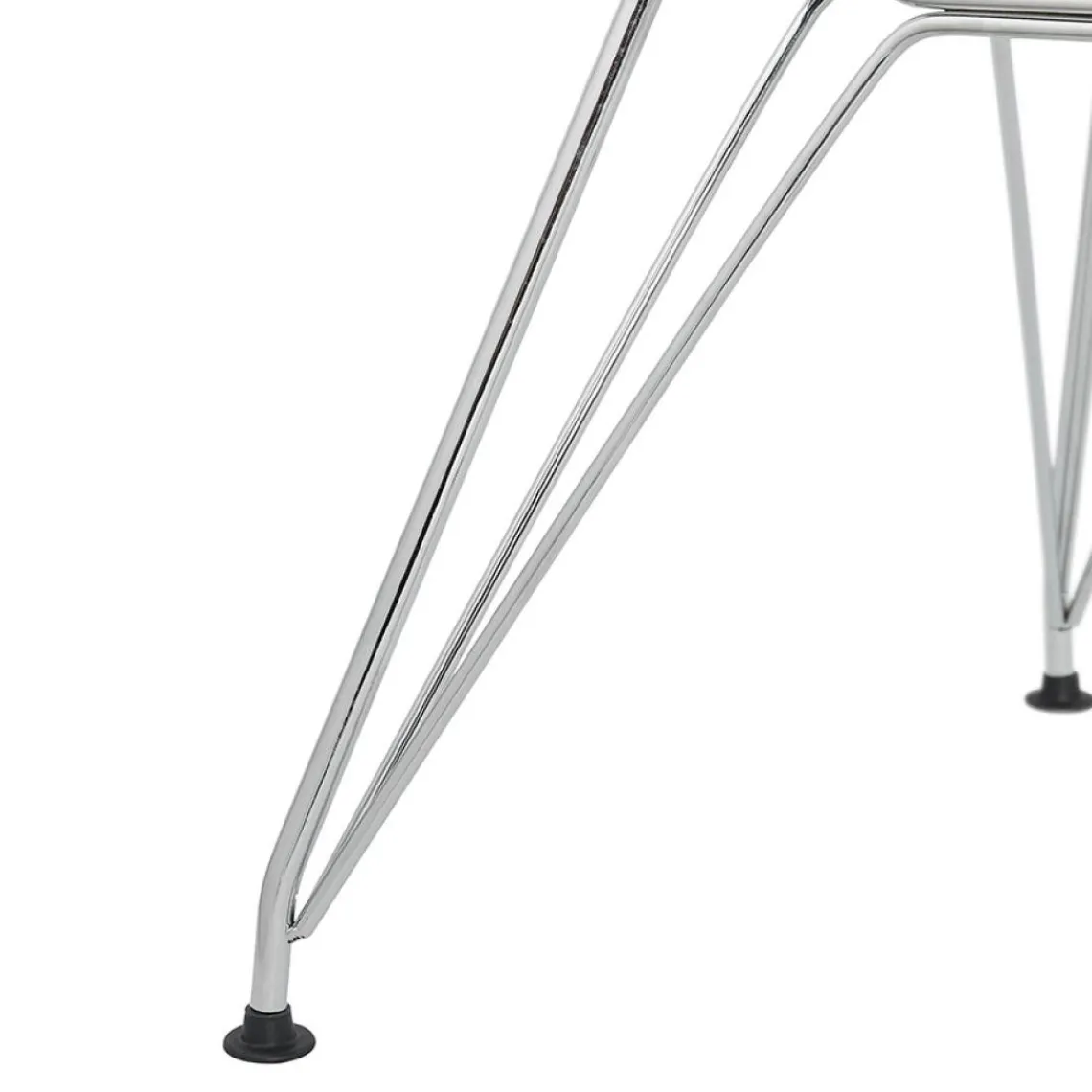 Chaise design avec assise en matière plastique noire et structure du piètement en métal chromé. De plus, l’assise de la chaise GAUDY est composée de motifs.