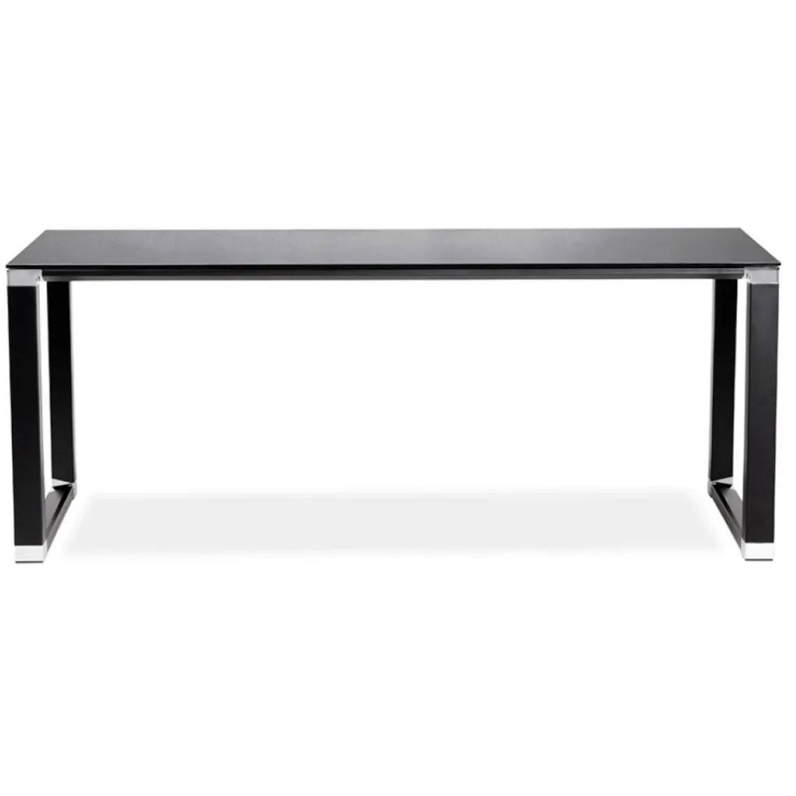 Donnez du style à votre espace de travail avec ce grand bureau de direction droit ‘XLINE’ chez Alterego. Dominant par sa taille et sa couleur Noire intense, ce mobilier au design contemporain se démarque immédiatement. Les pieds en V métalliques, ajoutent une touche d’originalité tout en étant robuste. Le top en verre noir, mesure 200 cm de longueur et 74 cm de hauteur, offrant un espace de travail généreux. Sa surface lisse se nettoie facilement, et son matériau en verre confère une élégance incontestable. Ce bureau apporte à la fois fonctionnalité et sophistication à votre bureau.