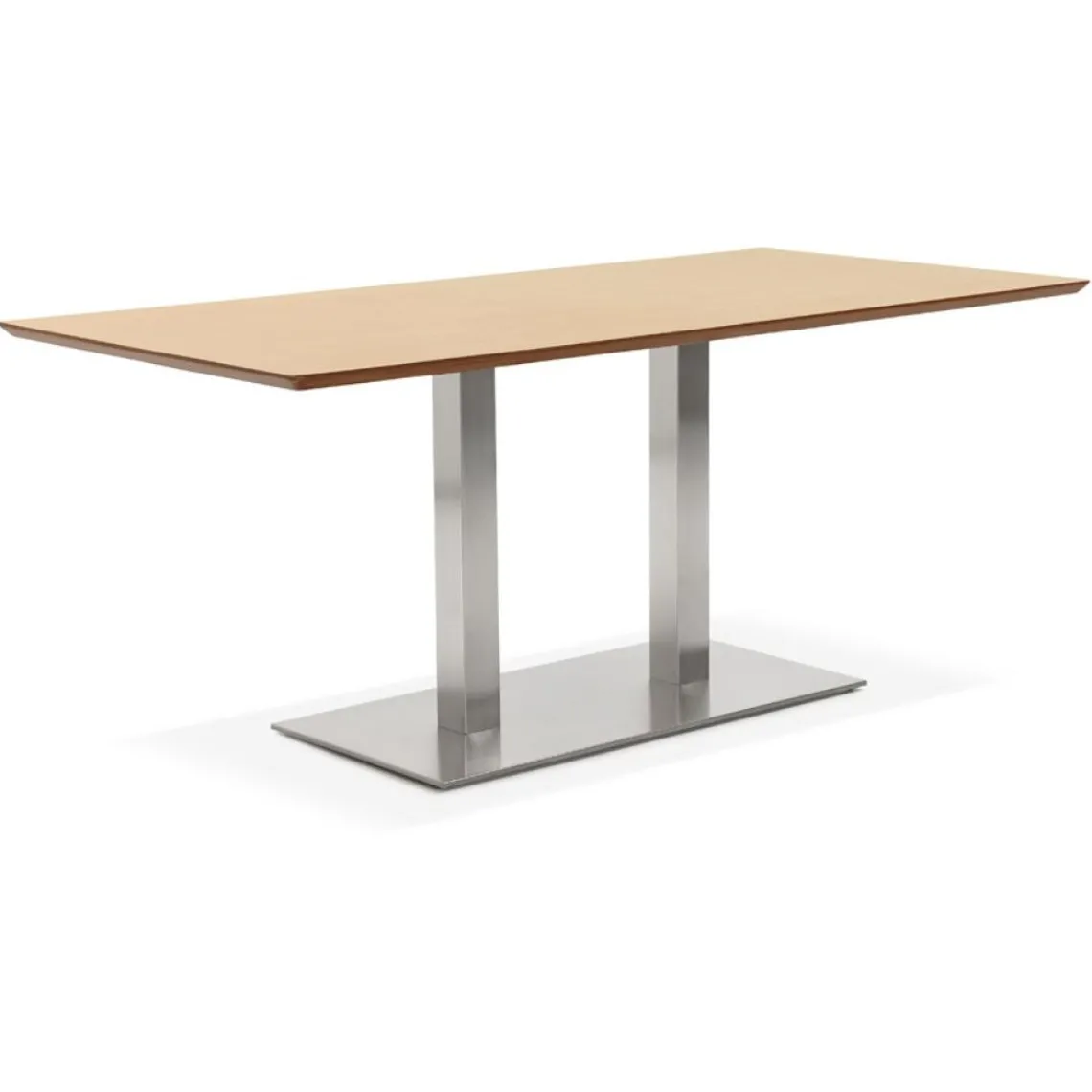 Bois, Métal Table de salle à manger ou de réunion avec un plateau en bois finition naturelle et une structure en acier brossé.