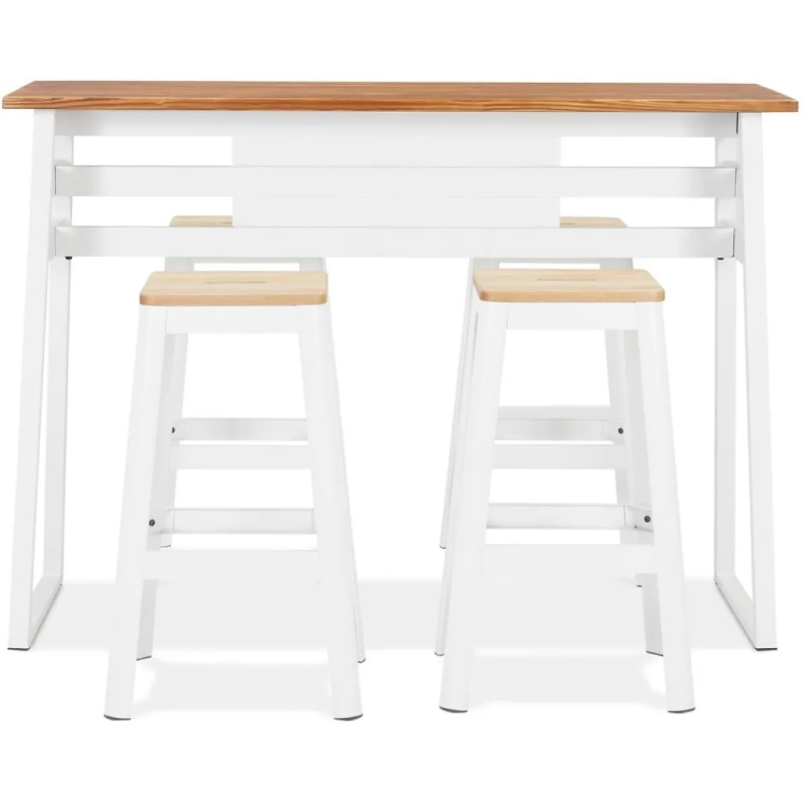 Caractéristiques Table de bar haute ‘NIKI’ en bois massif et pied en métal blanc