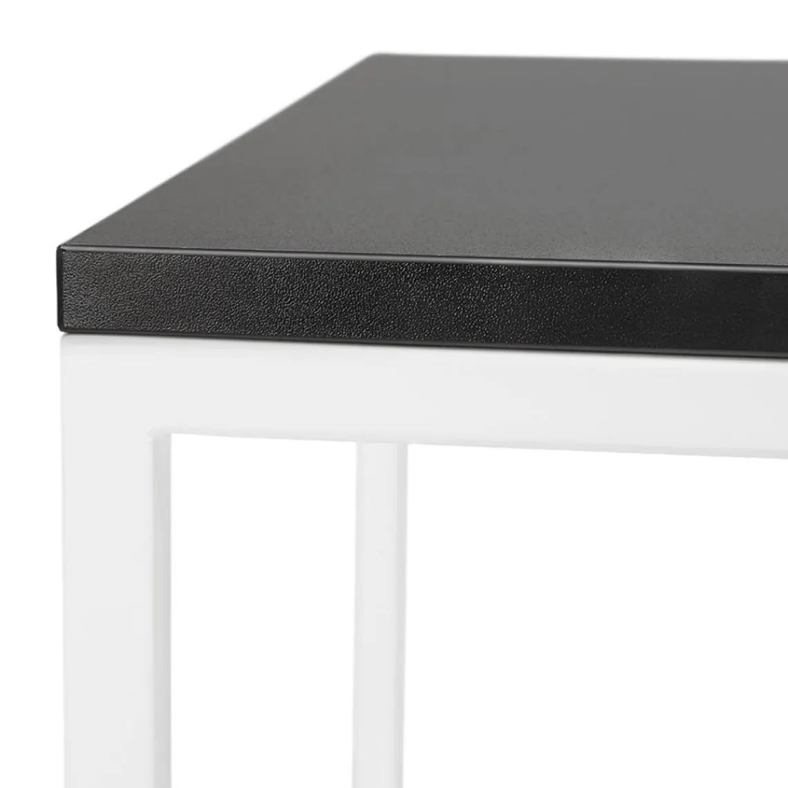 Caractéristiques Table haute ‘ORTOS’ avec plateau noir et structure blanche idéale pour les professionnels
