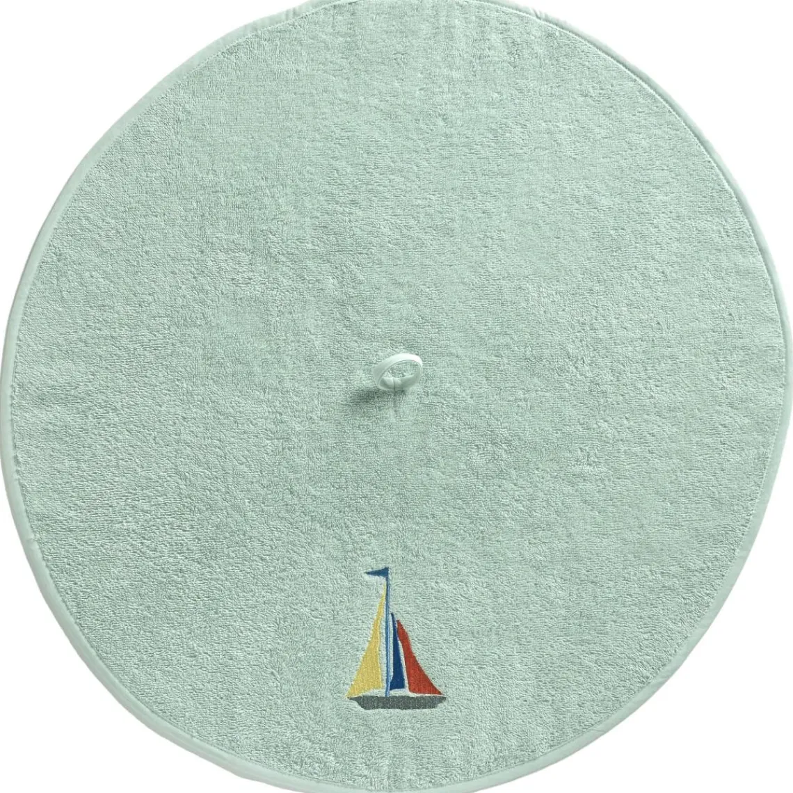 Caractéristiques Essuie-mains rond brodé bateau vert d’eau