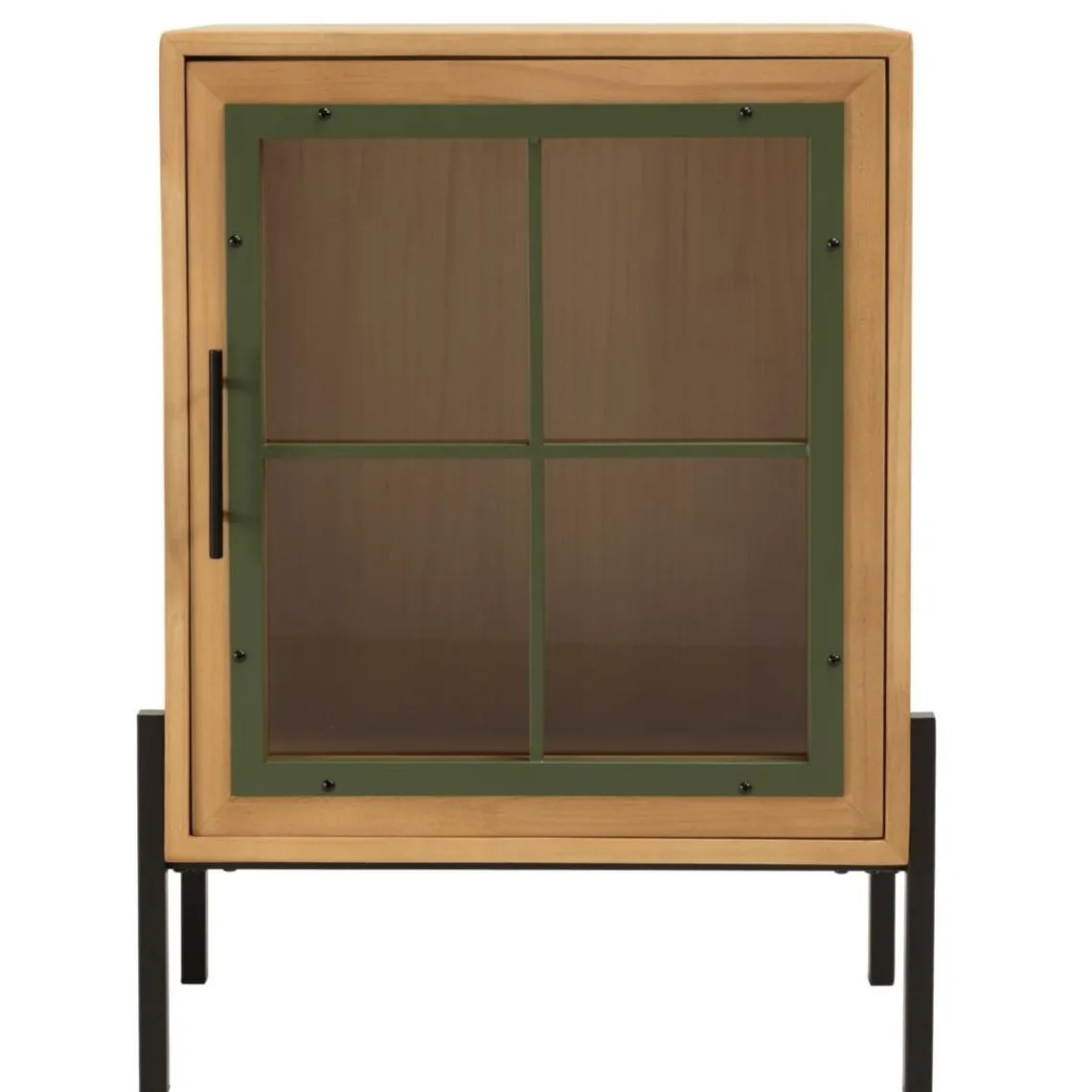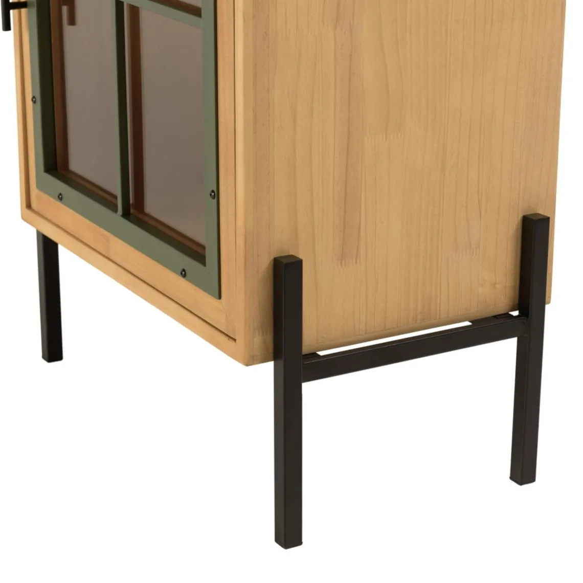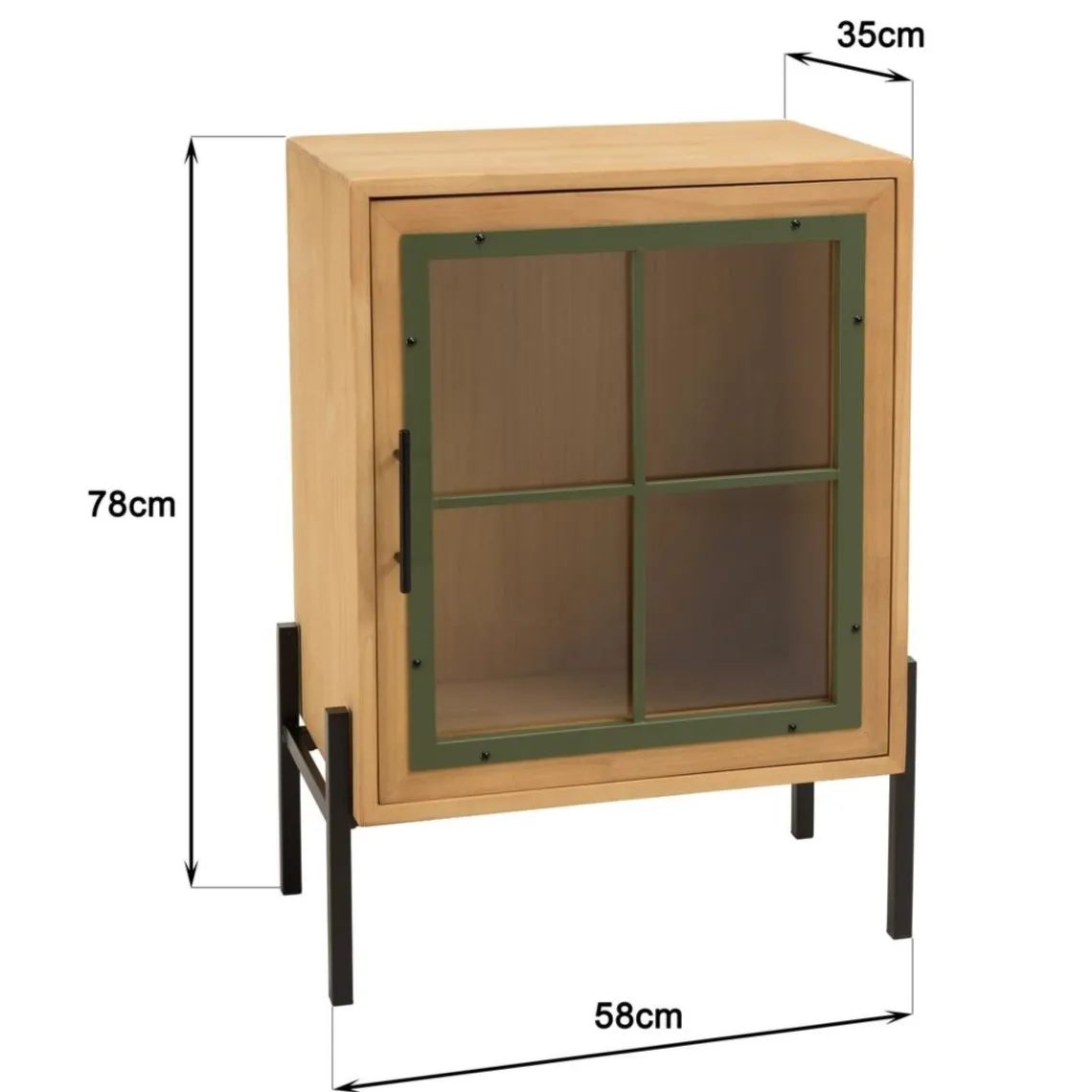 Caractéristiques Buffet 1 porte vitrée encadrement vert pin et métal noir HELENA