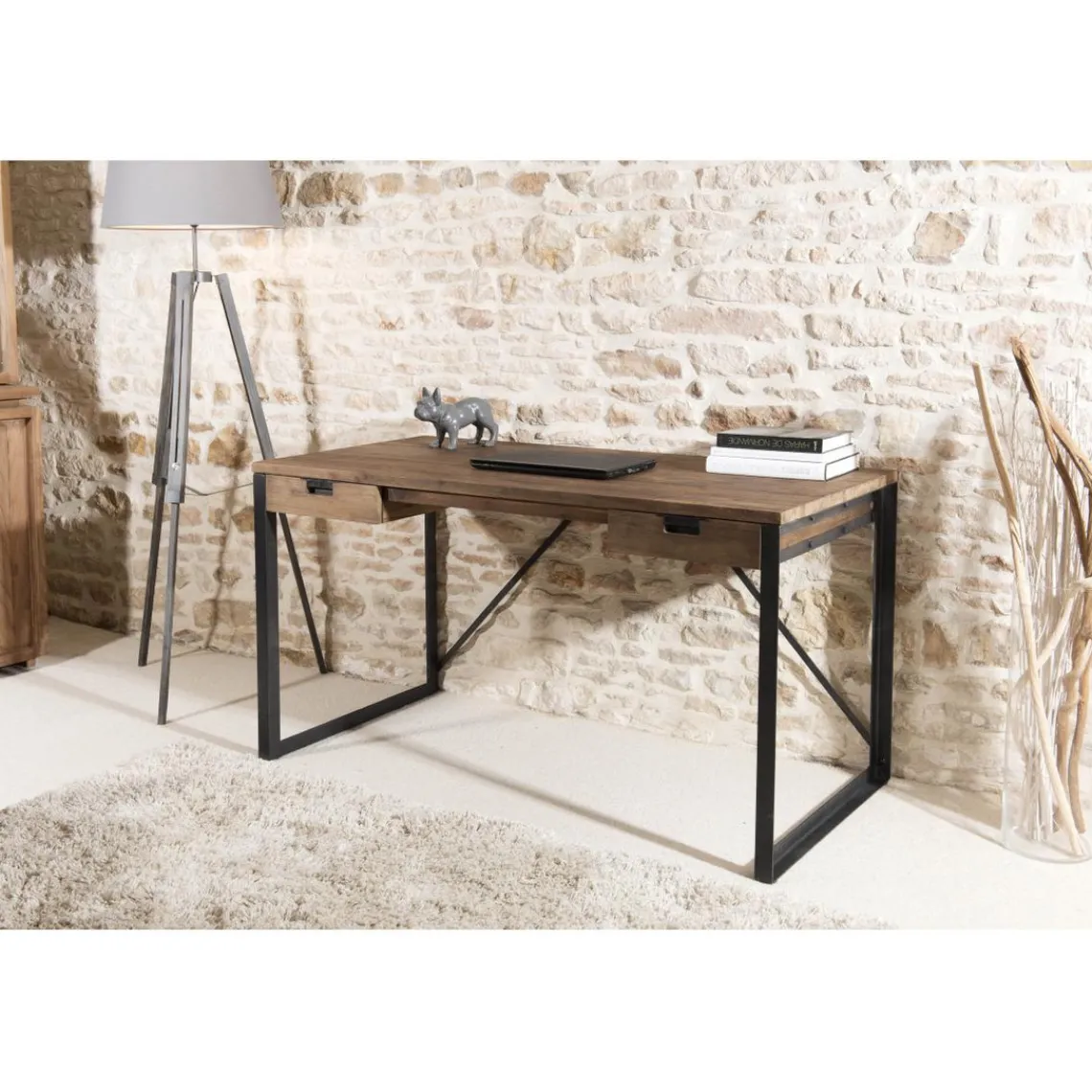 Caractéristiques Bureau 2 tiroirs bois et métal – NASAI