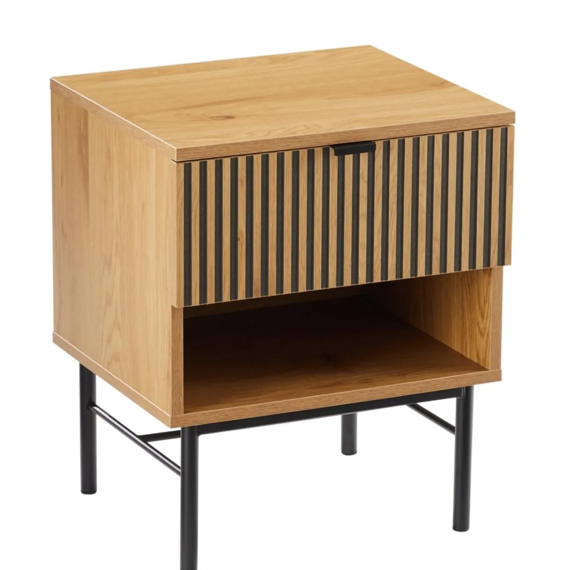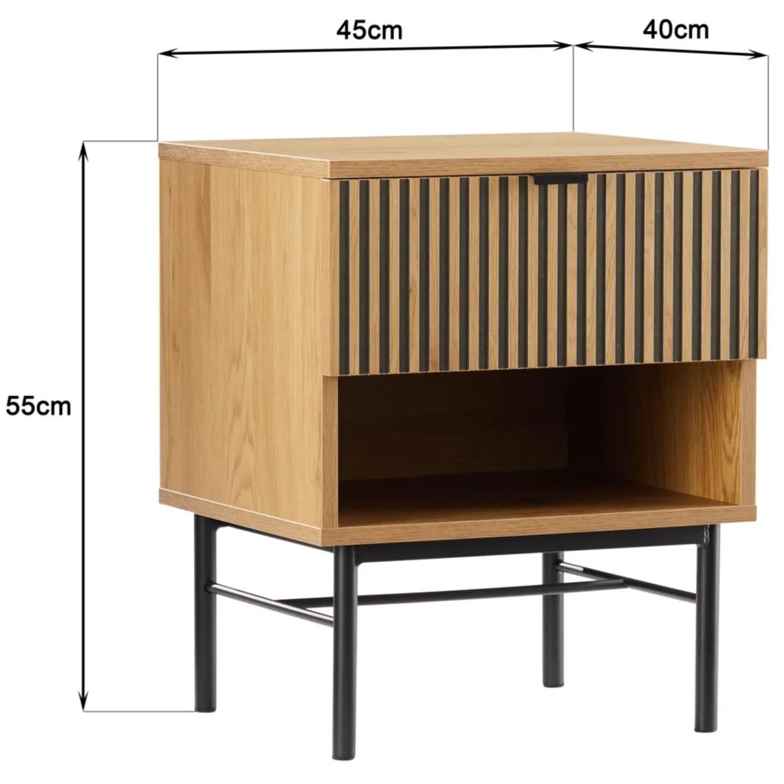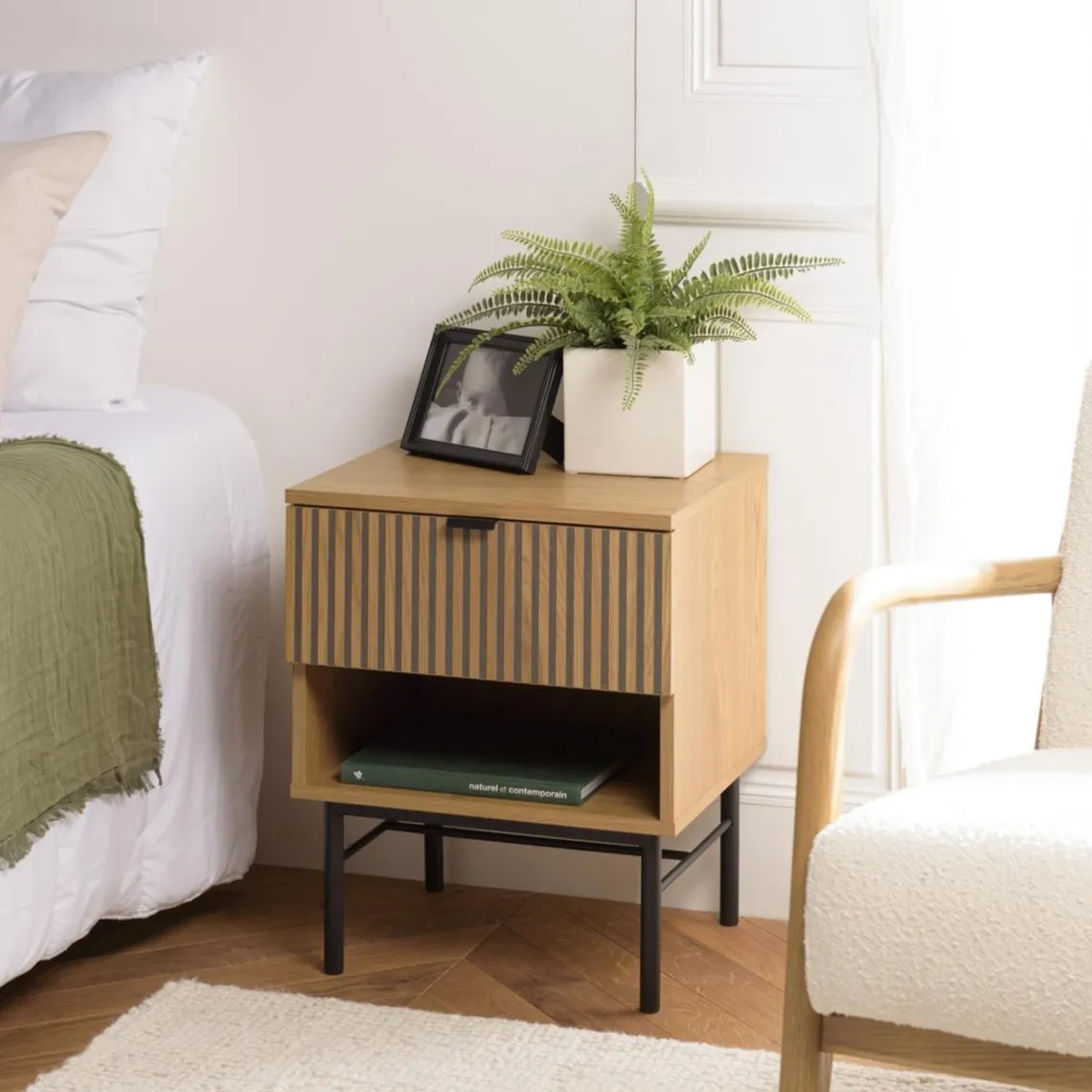 Caractéristiques Chevet 1 tiroir décor effet bois rainuré noir et naturel SCOTT