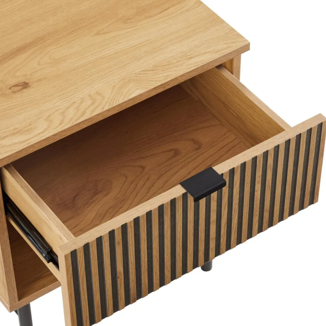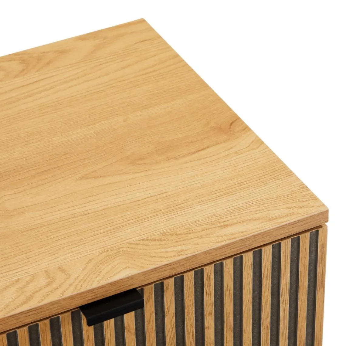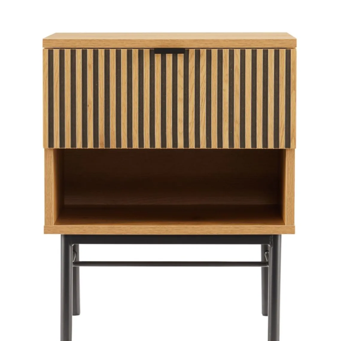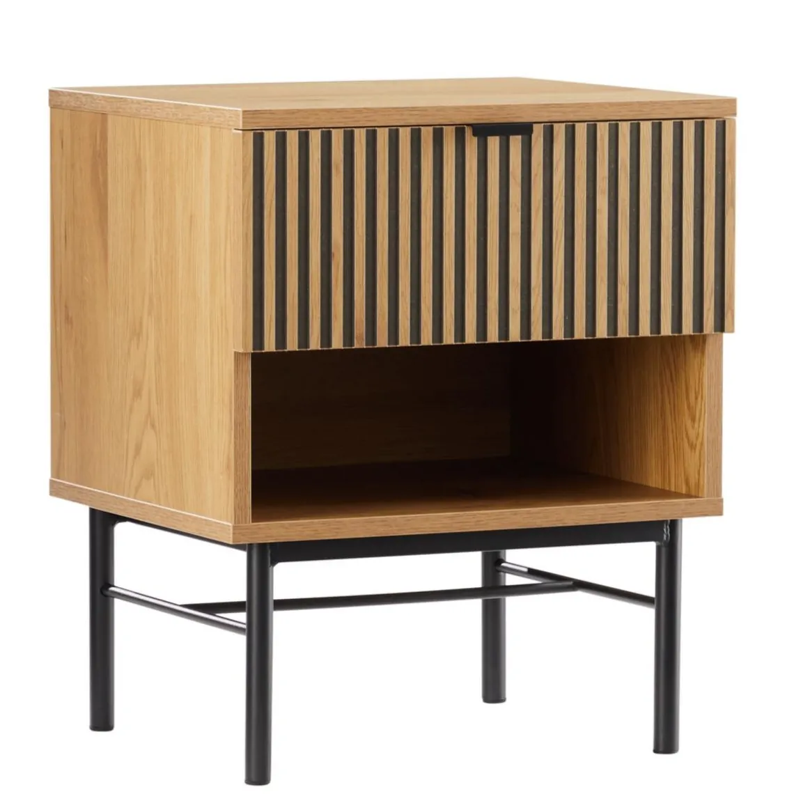 Caractéristiques Chevet 1 tiroir décor effet bois rainuré noir et naturel SCOTT
