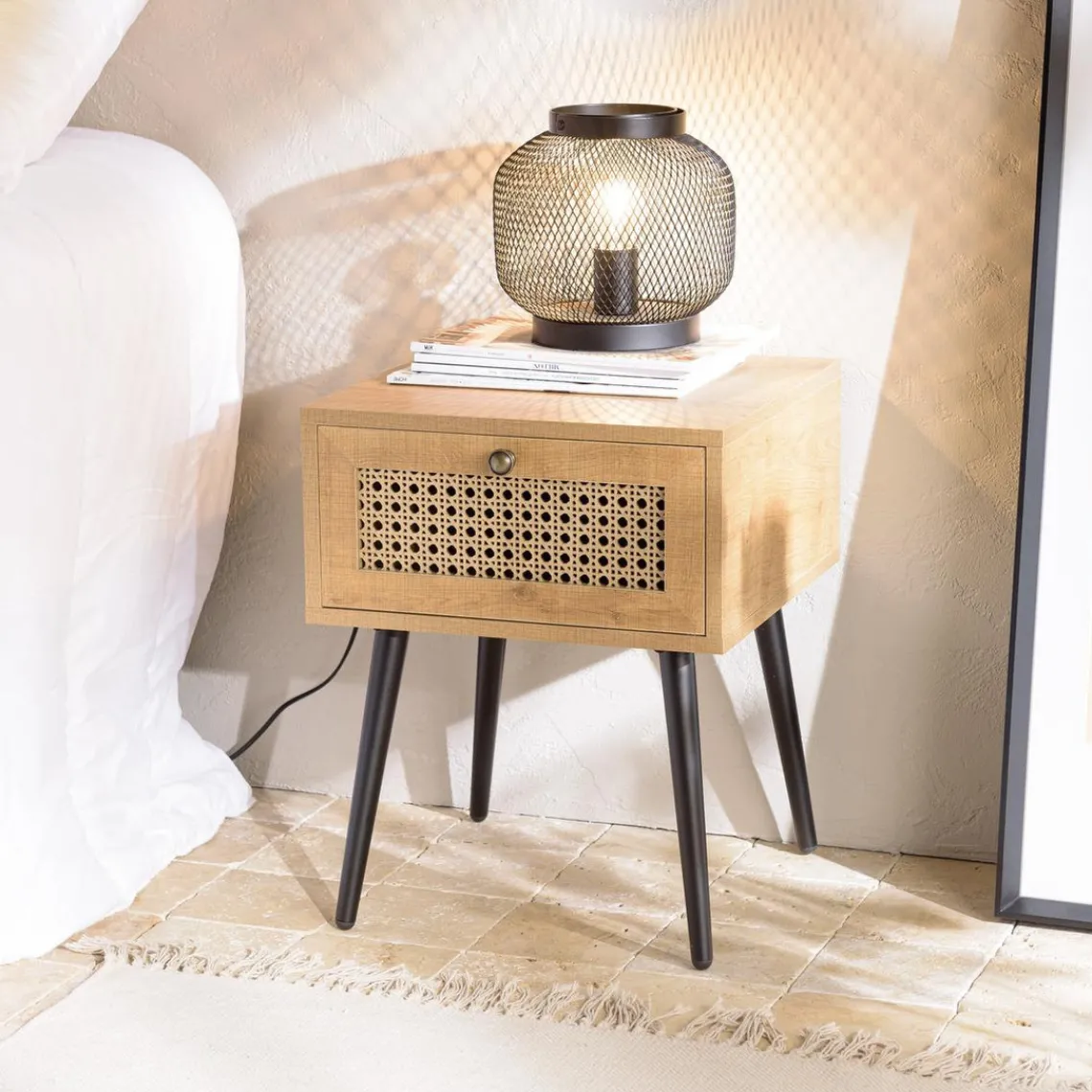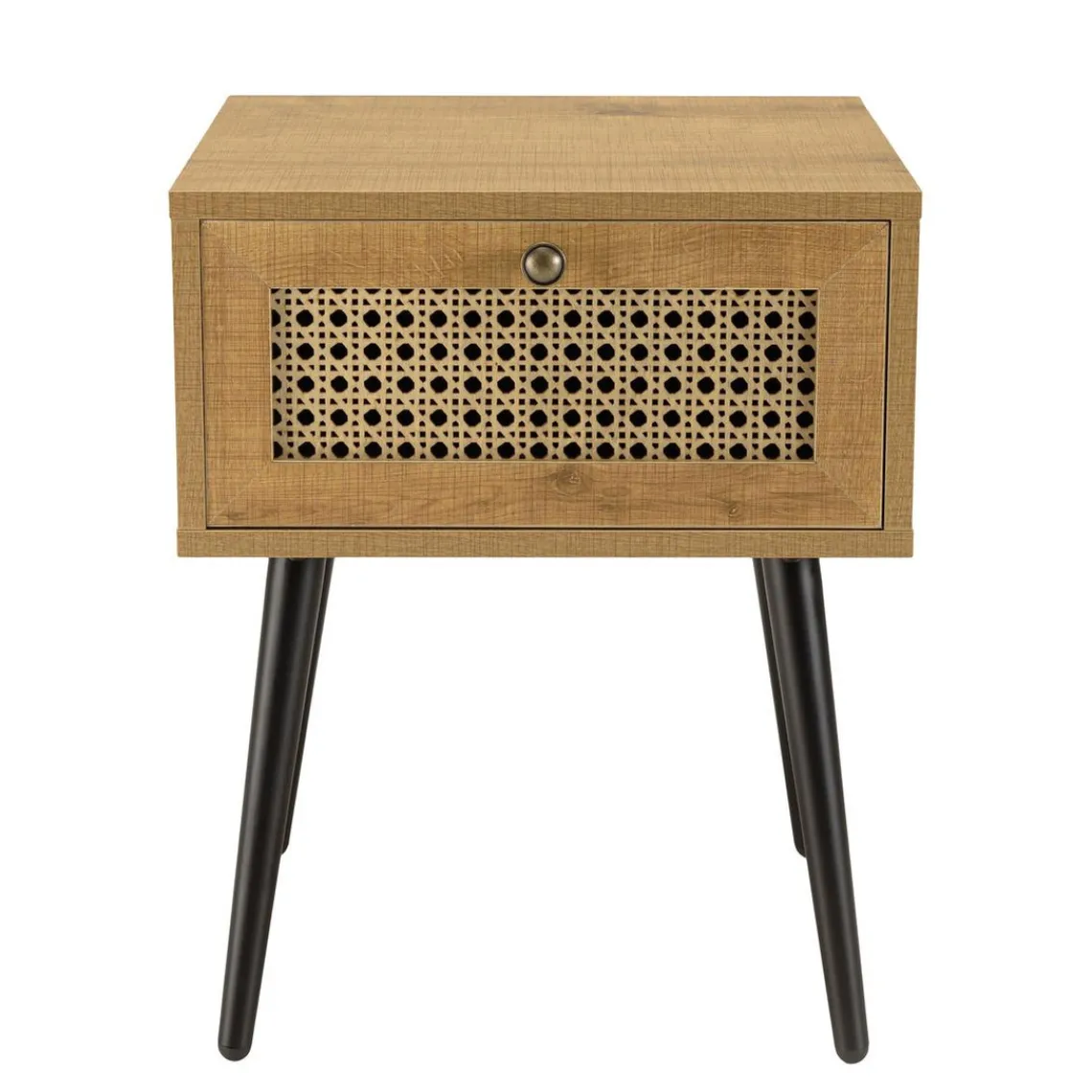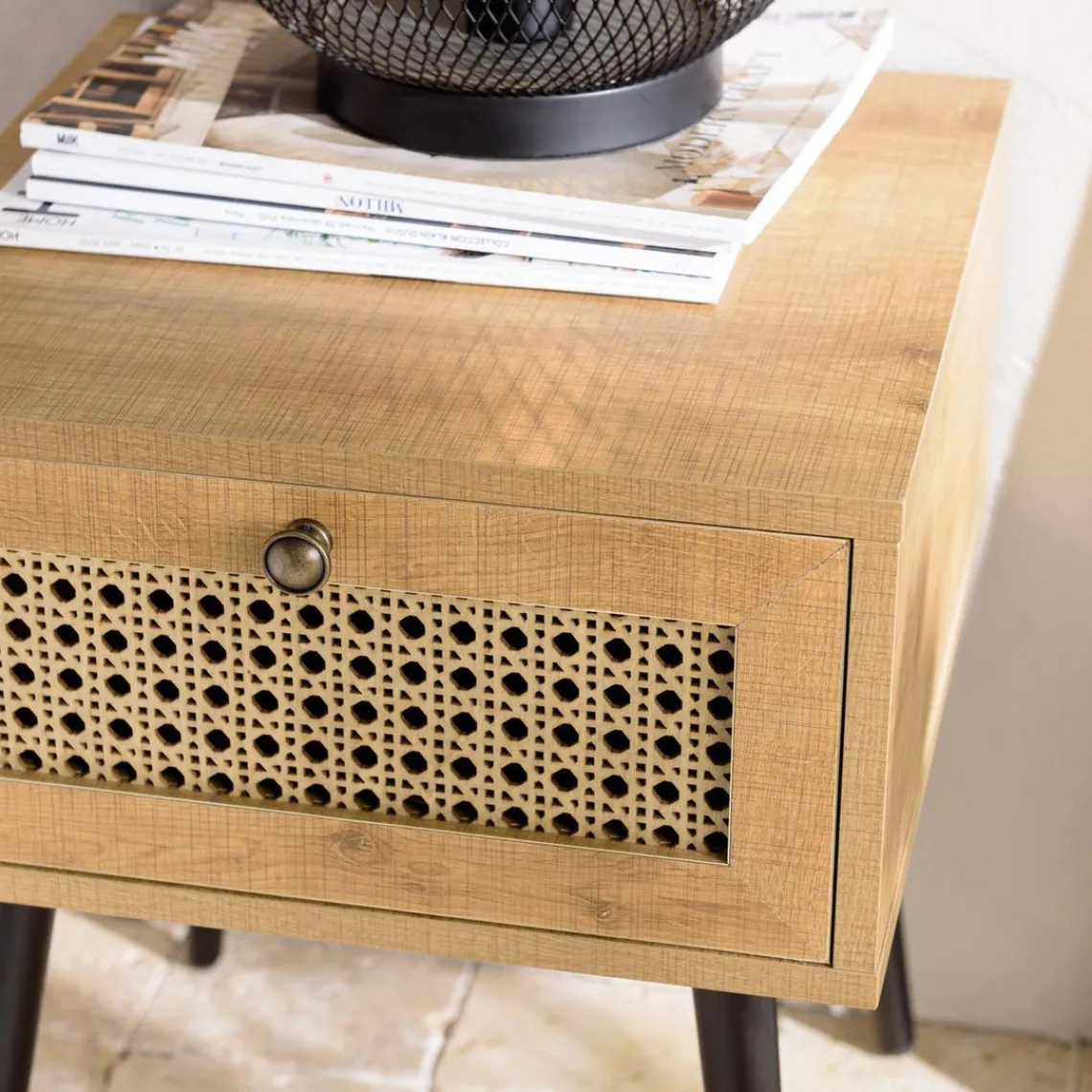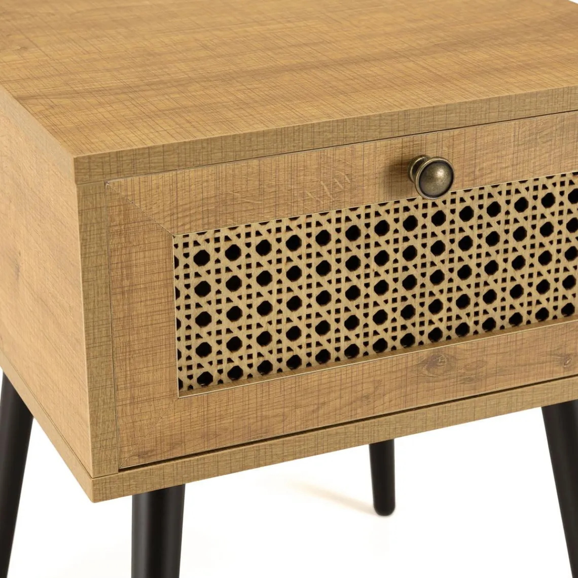 Caractéristiques Chevet marron 1 tiroir effet cannage pieds métal noir CHARLIE