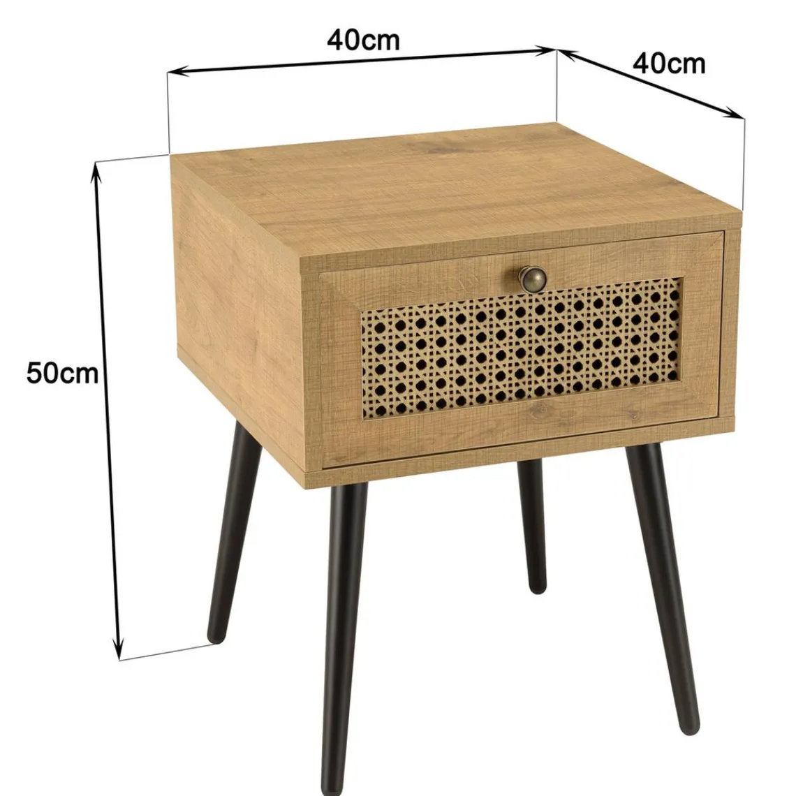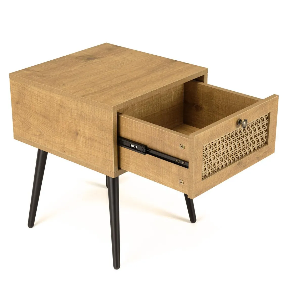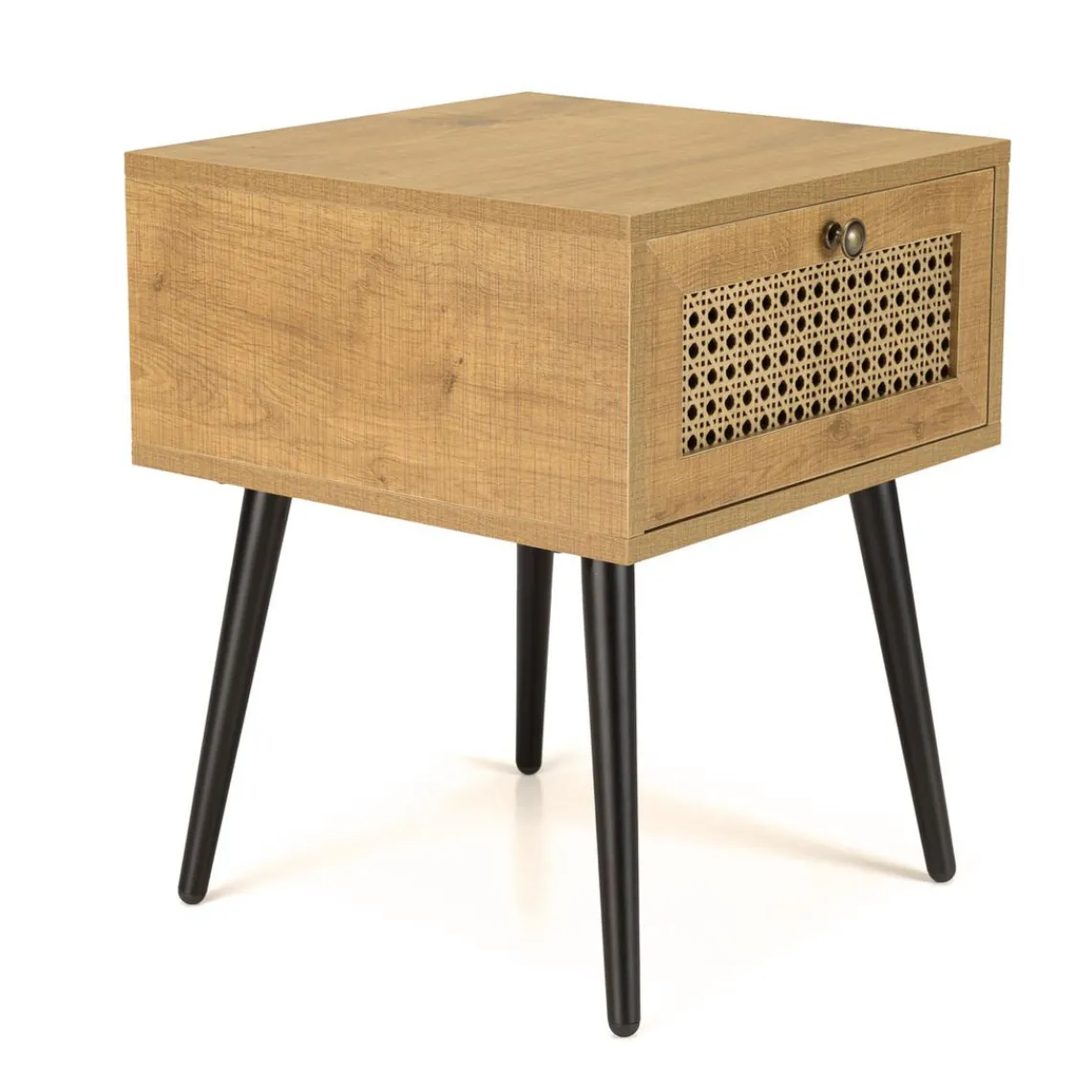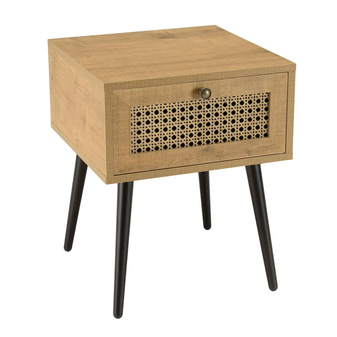 Caractéristiques Chevet marron 1 tiroir effet cannage pieds métal noir CHARLIE