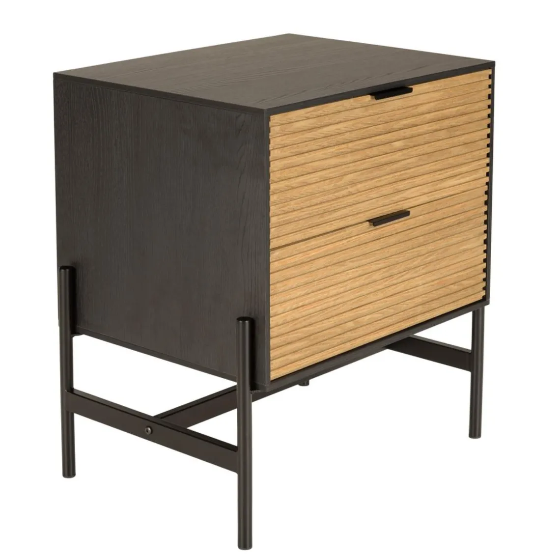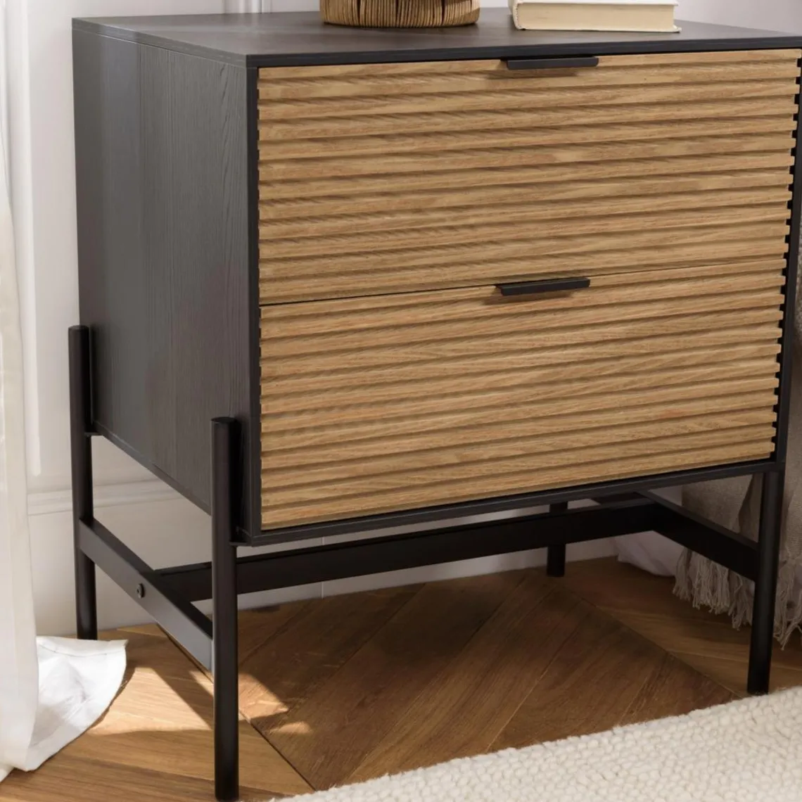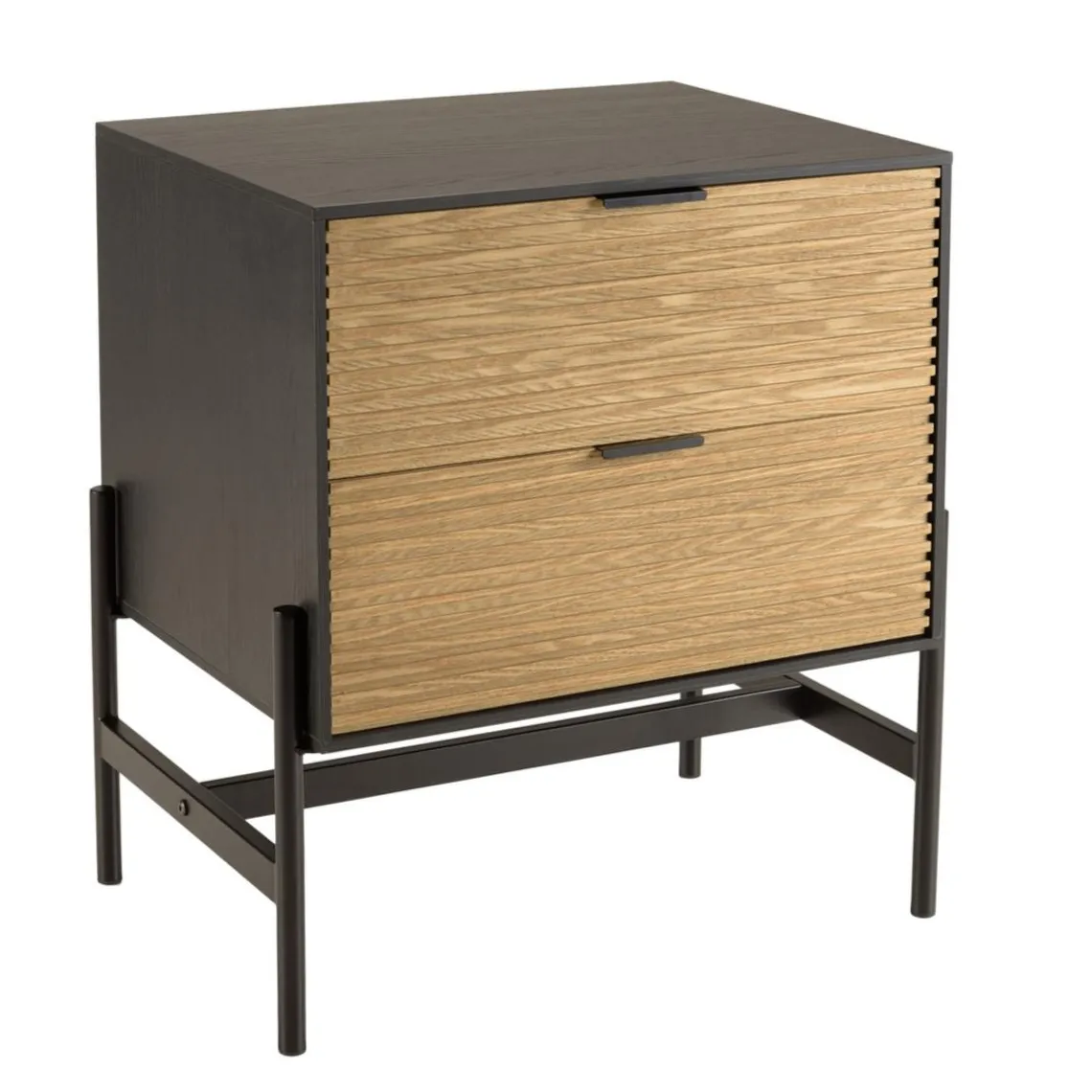 Caractéristiques Chevet marron et noir 2 tiroirs Pin pieds métal noir