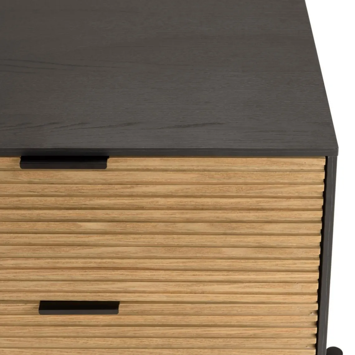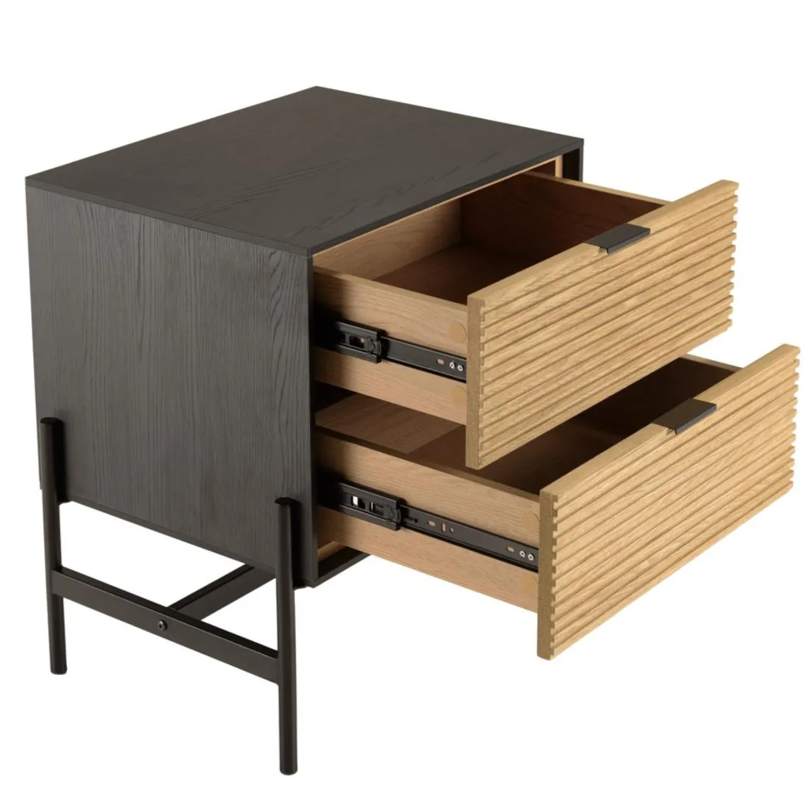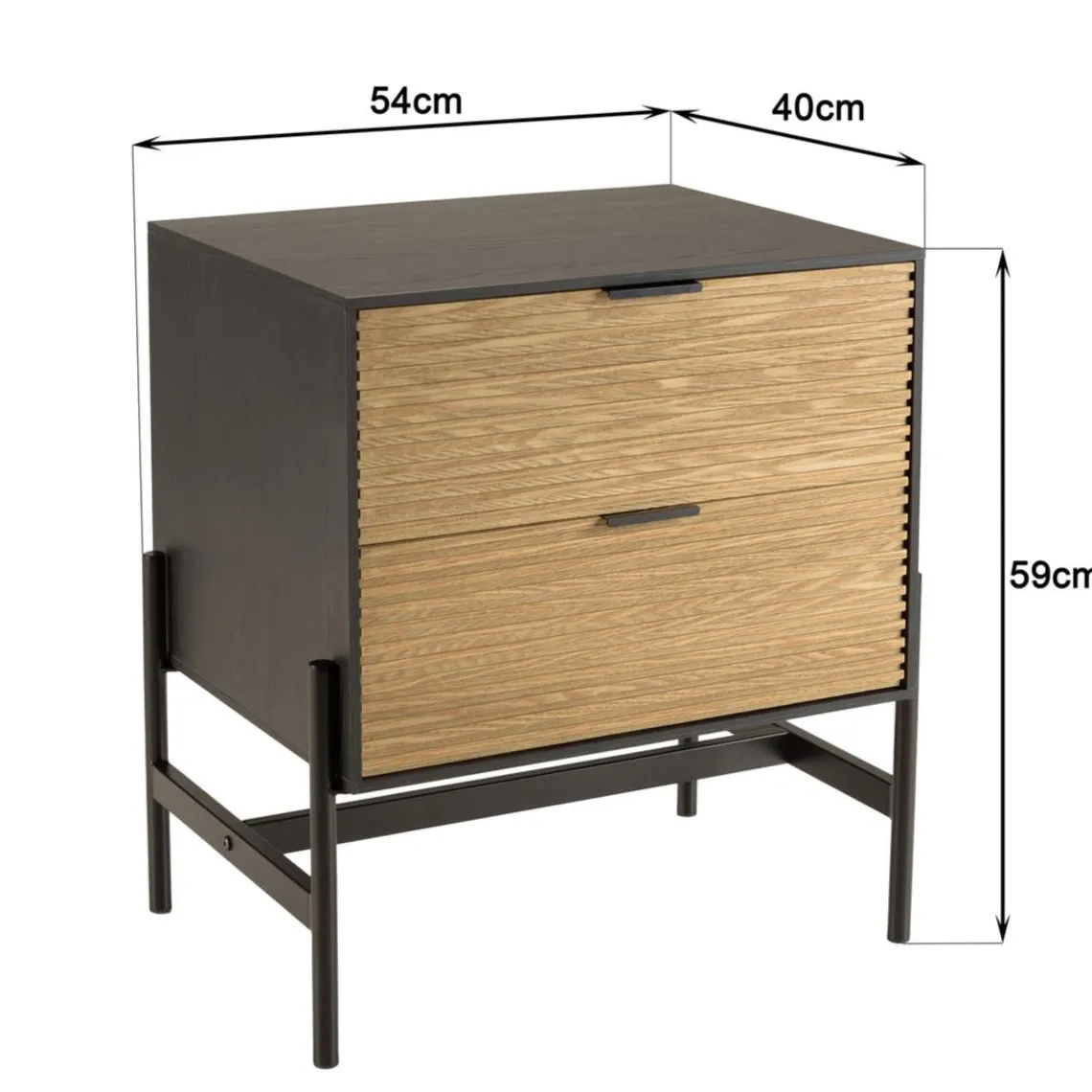 Caractéristiques Chevet marron et noir 2 tiroirs Pin pieds métal noir