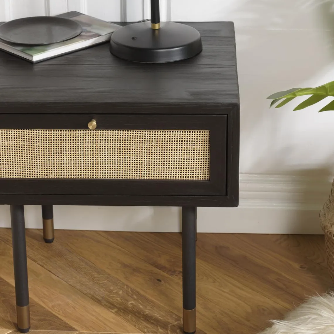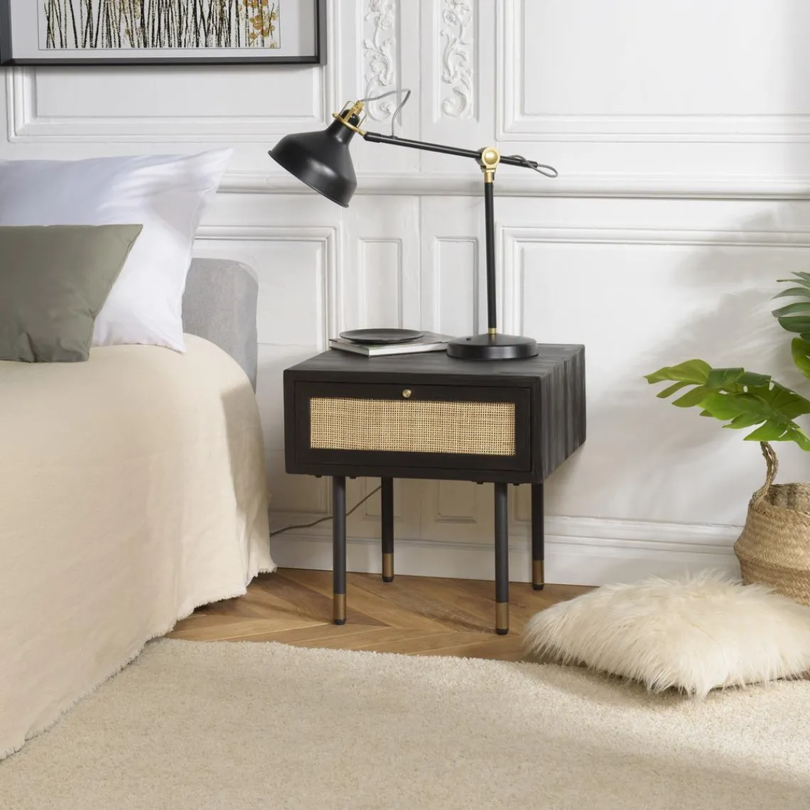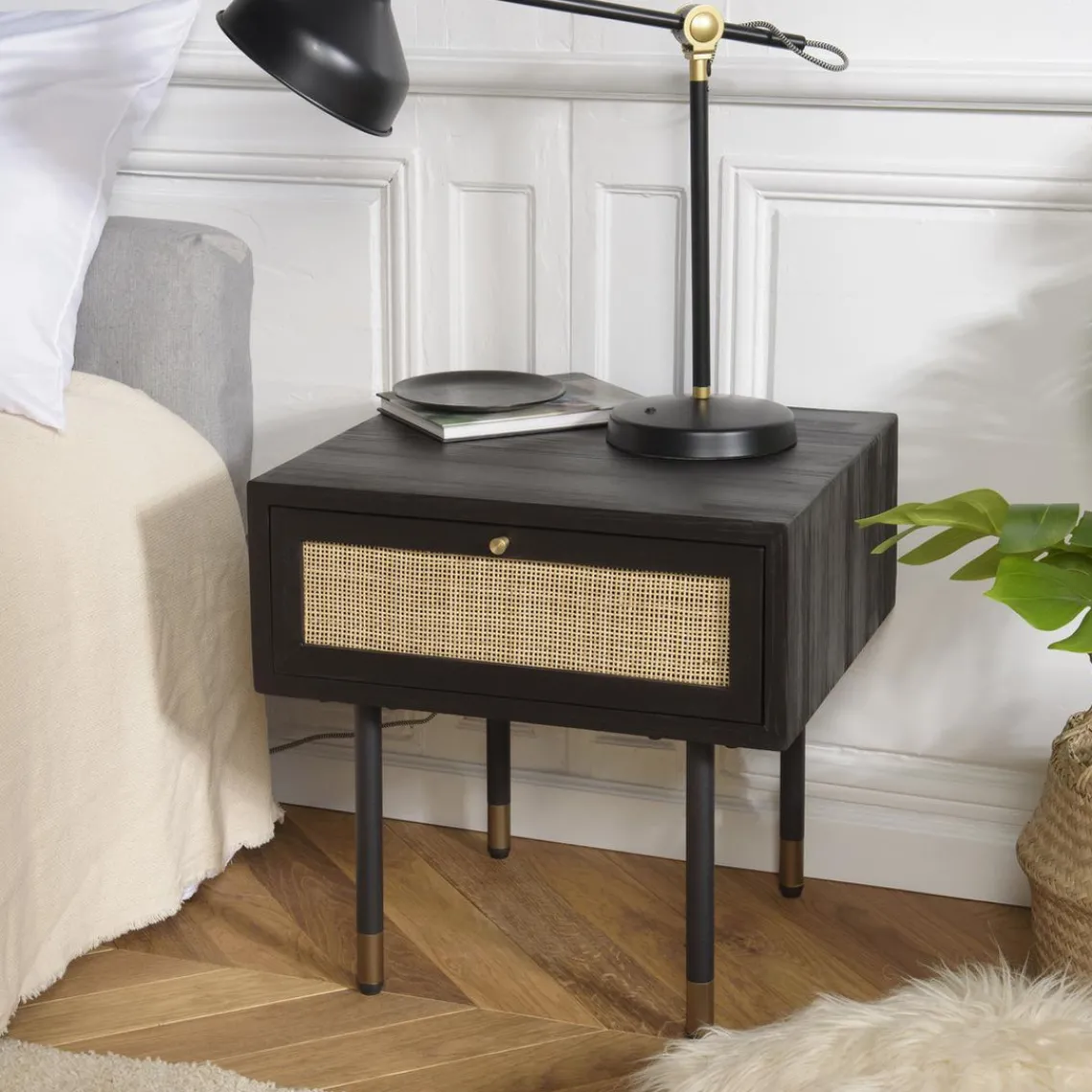 Caractéristiques Chevet Noir 1 Tiroir Cannage YANIS