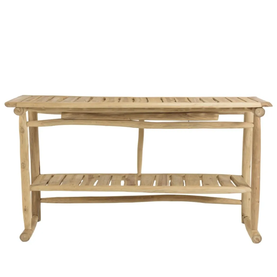 La Console WILL de la marque MACABANE est un produit au design unique qui apporte nature et sérénité dans votre intérieur. Sa couleur beige douce et naturelle se marie parfaitement à tout style de décoration. Constituée de deux plateaux robustes en enchevêtrement de branches de Teck naturel, elle offre un espace de rangement pratique et accueillant. Sa matière en Teck, connue pour sa résistance, garantit un produit de qualité durable.