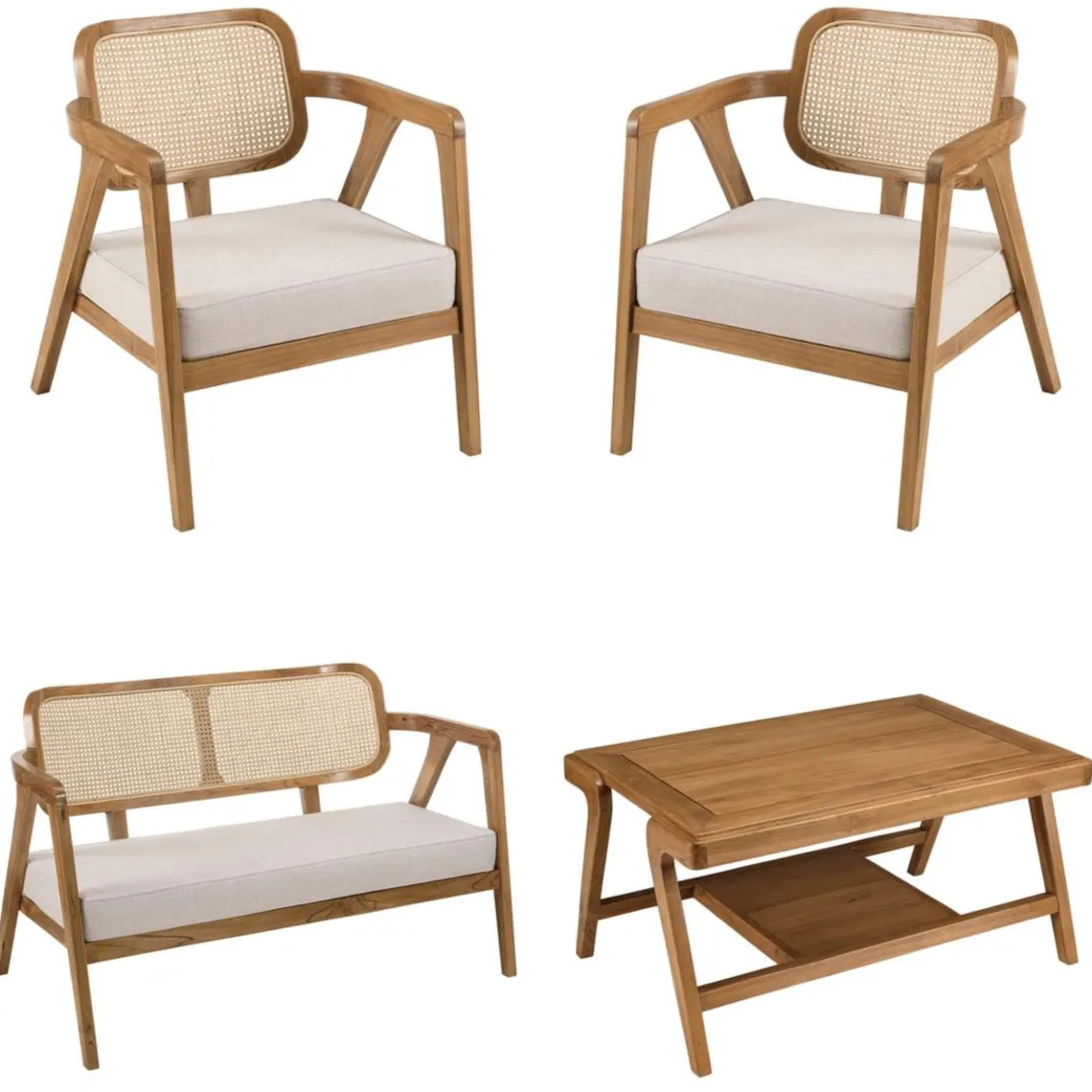 Matières : Teck/Rotin/Tissu polyester
