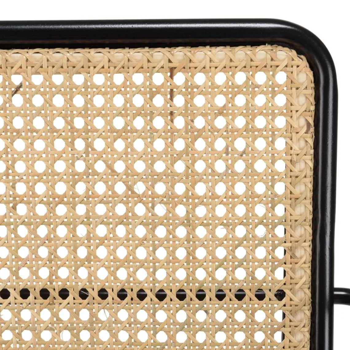 Caractéristiques Fauteuil métal noir assise tissu gris foncé dossier rotin AGATHE