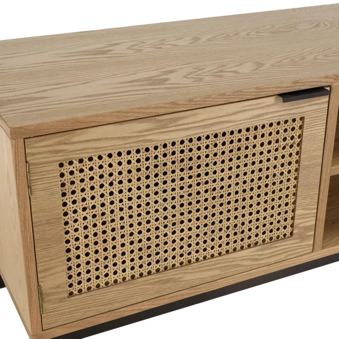 Caractéristiques Meuble TV 2 portes cannage naturel pieds métal noir MARCEAU