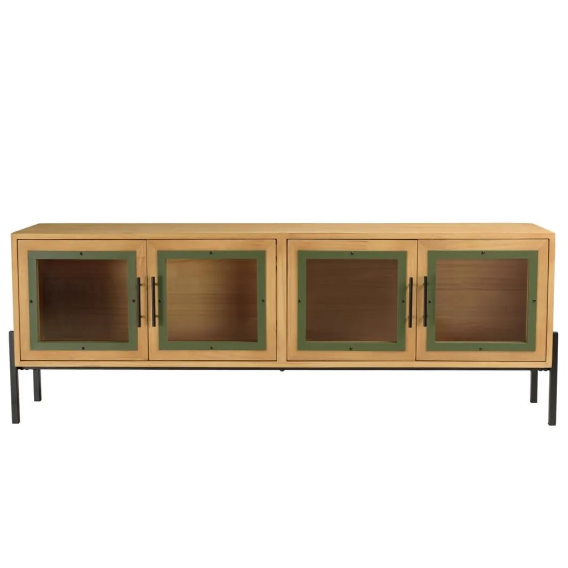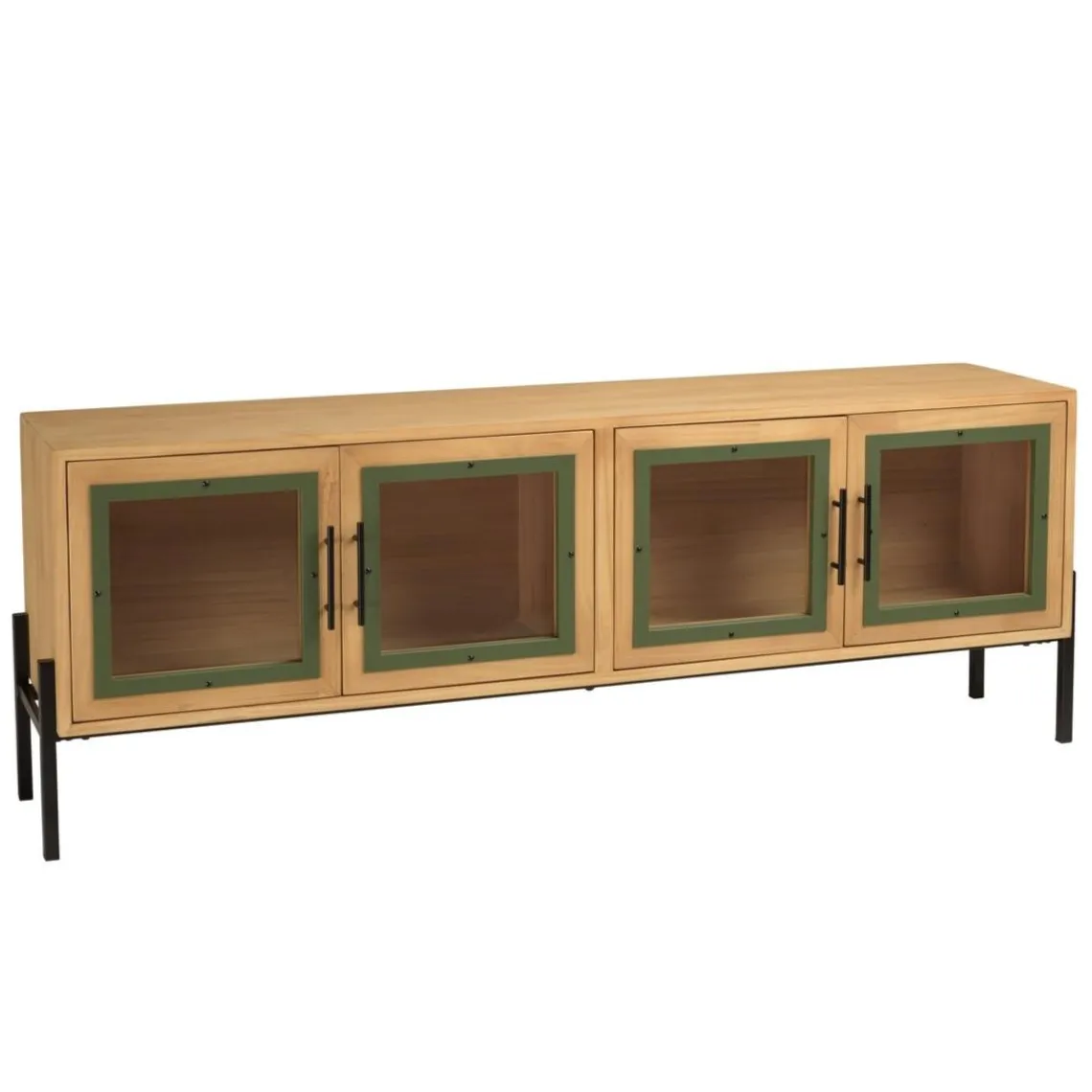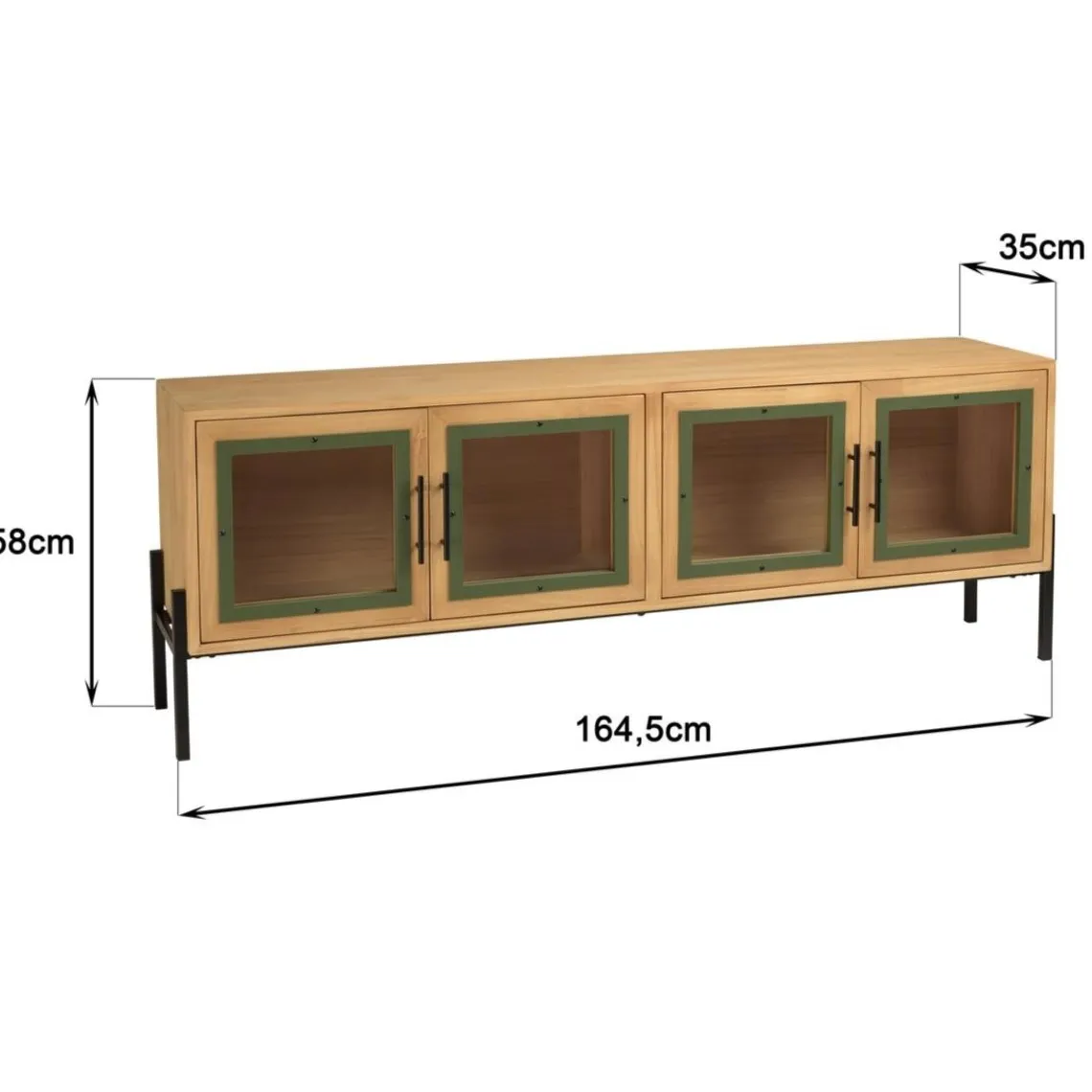 Caractéristiques Meuble TV 4 portes vitrées encadrement vert pin et métal noir HELENA