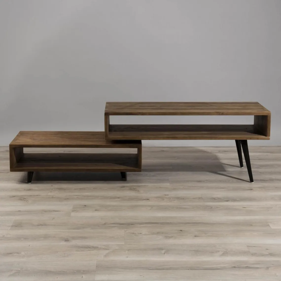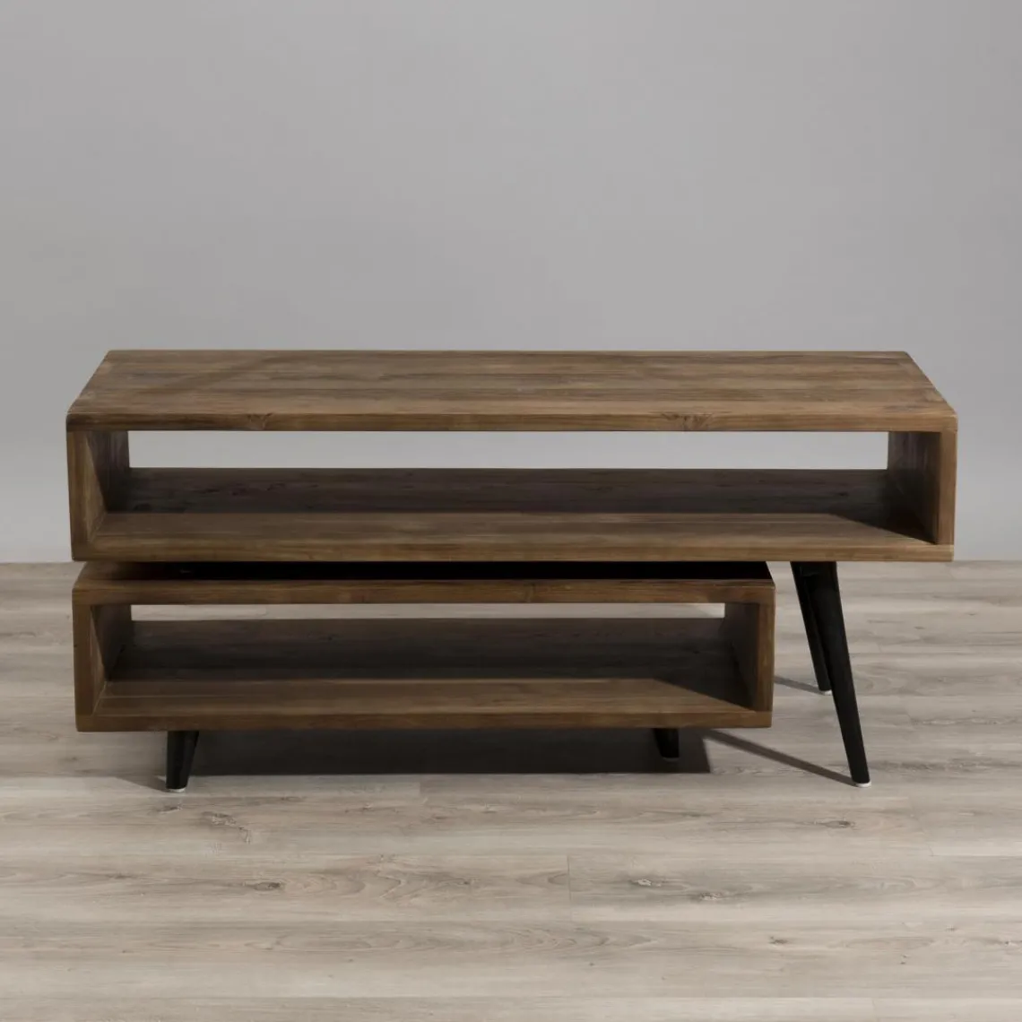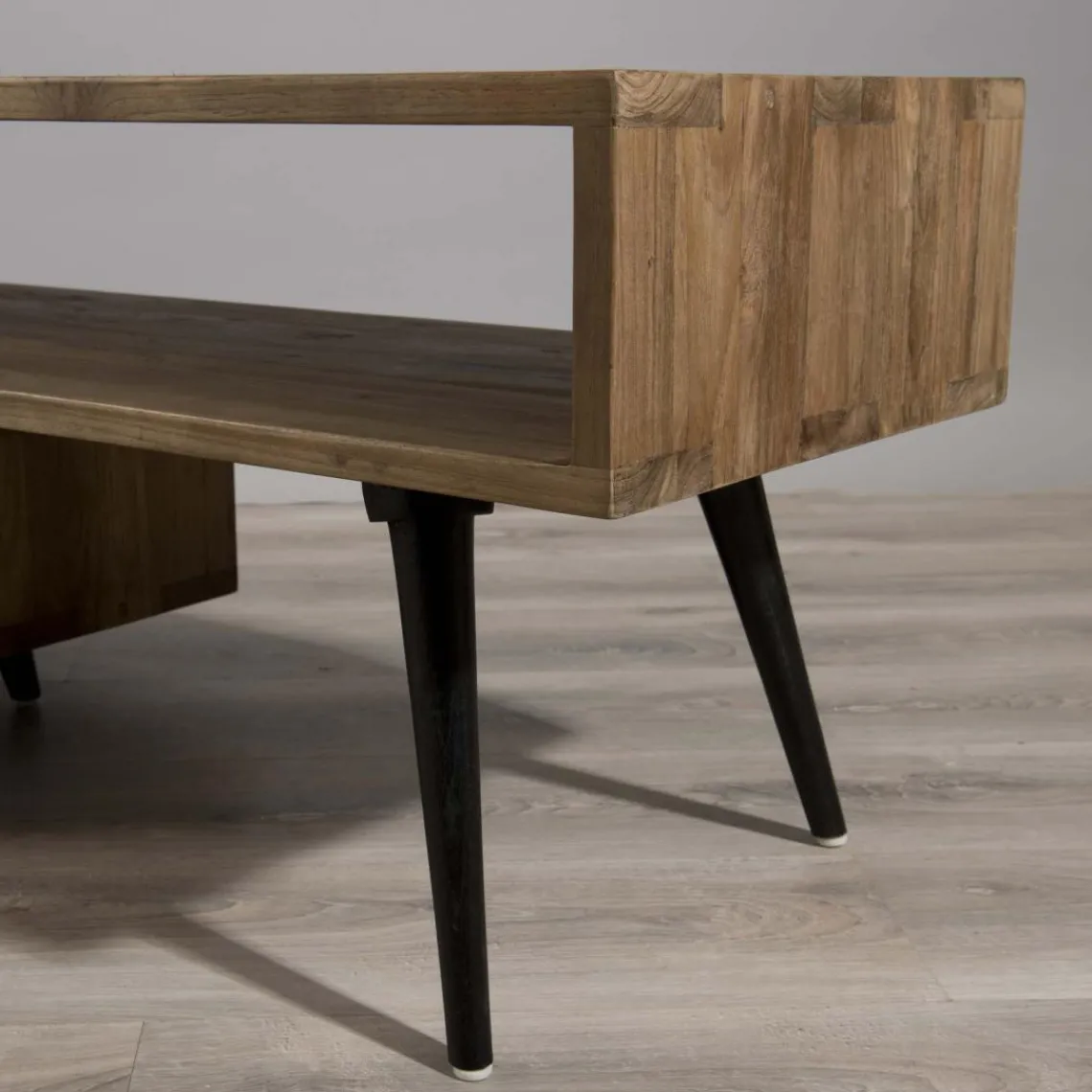 Meuble TV avec console rotative en retour en teck recyclé Scandi