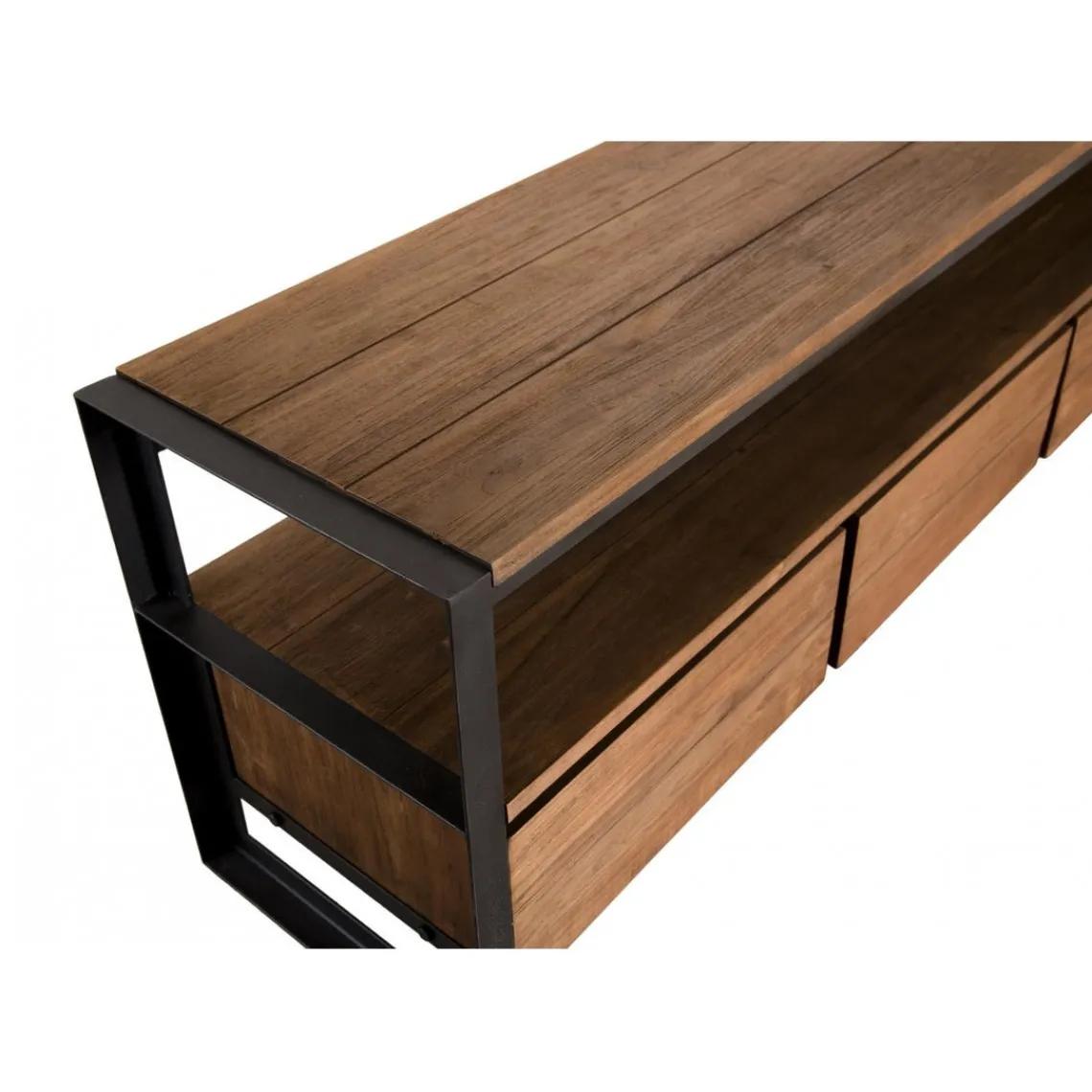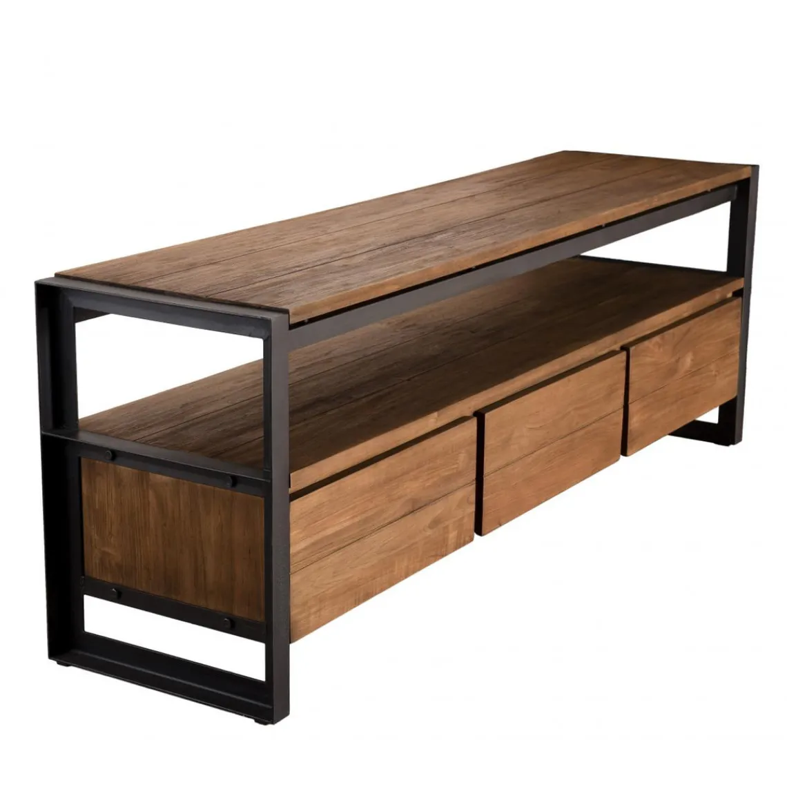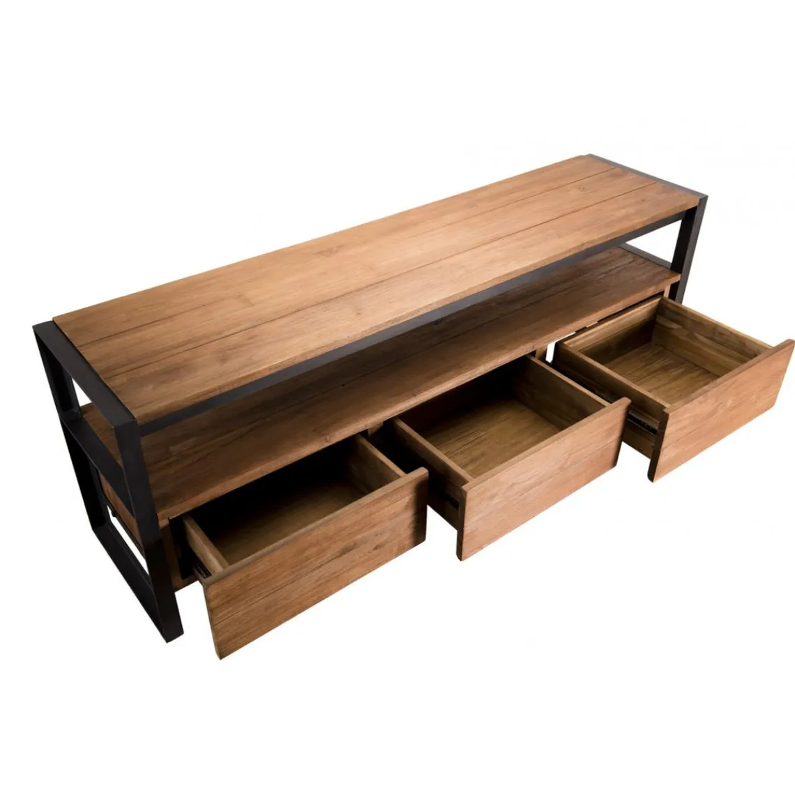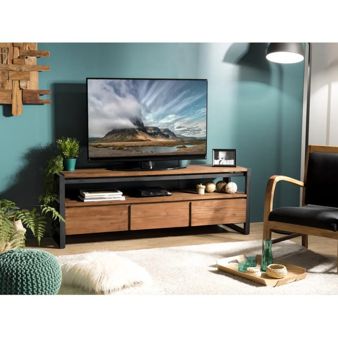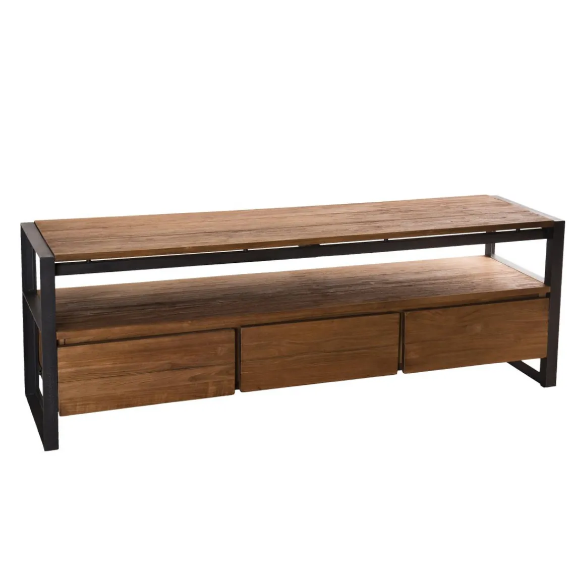 Caractéristiques Meuble Tv SIXTINE 3 Tiroirs Et 1 Étagère Bois Teck Recyclé Et Métal